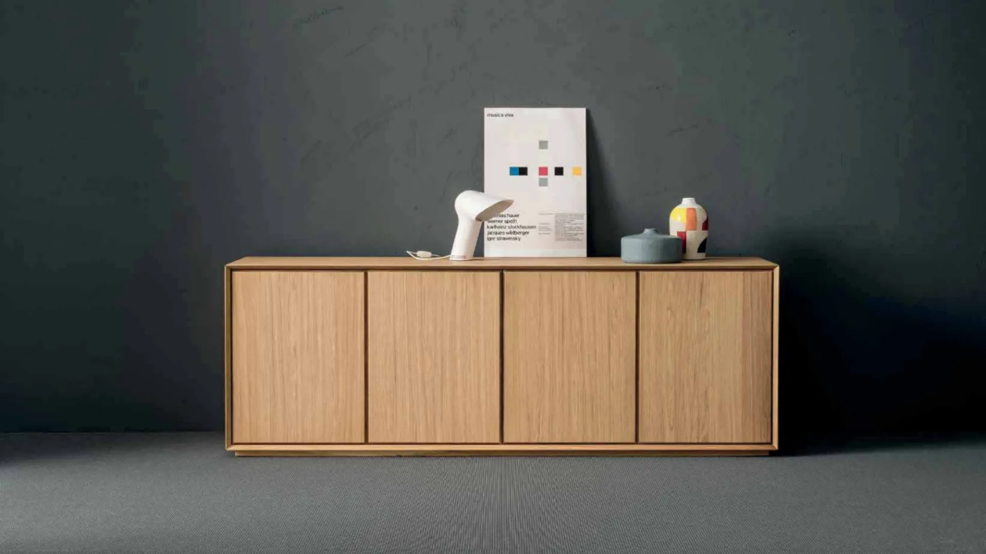 Arreda un soggiorno operativo e pratico con questa madia Nook 4 ante a terra di Alta Corte: scopri le più belle Madie in legno.