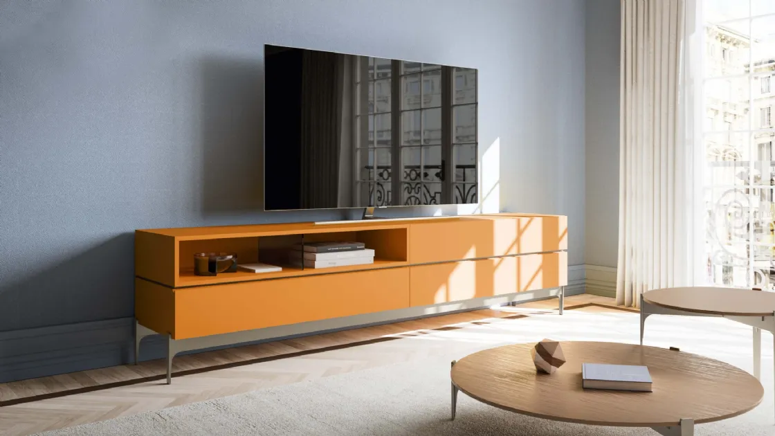 Arreda un living operativo e pratico con questa madia Vano a Giorno di SantaLucia: scopri le più belle Madie in laccato opaco.
