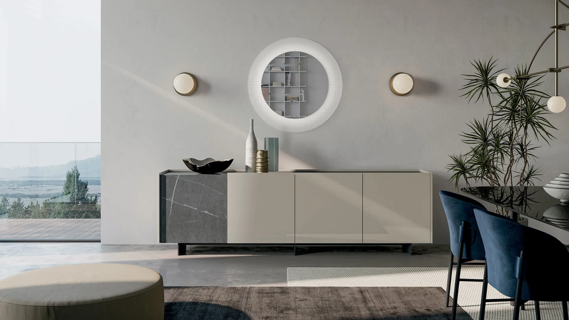 Arreda un soggiorno pratico e operativo con questa madia Wrap di Dall'Agnese: scopri le più belle Madie in laccato lucido.