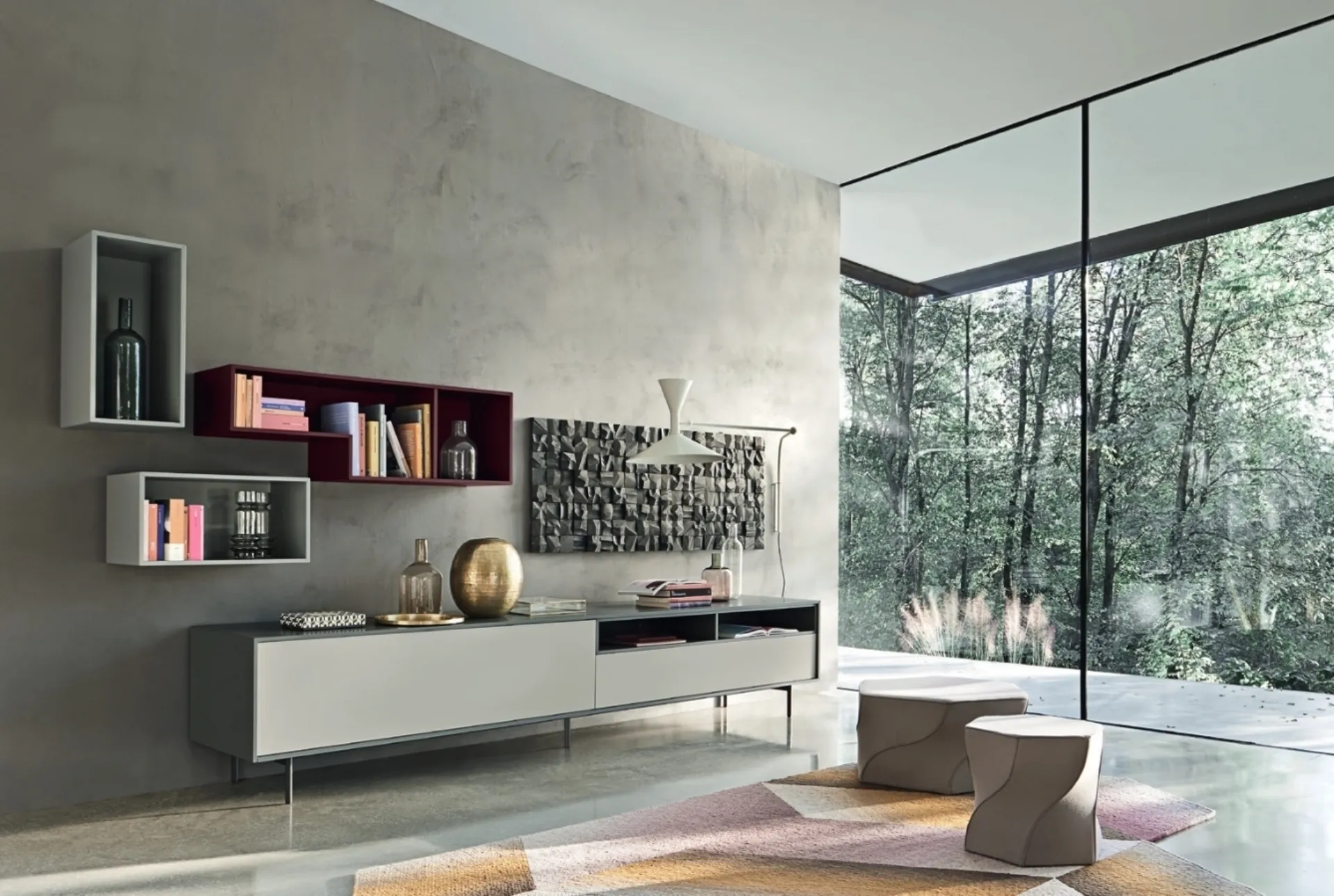 Clicca e scopri il modello Base Open con riquadro 37 Sangiacomo: questo mobile per la televisione in laccato opaco è tra le più originali soluzioni per il living.