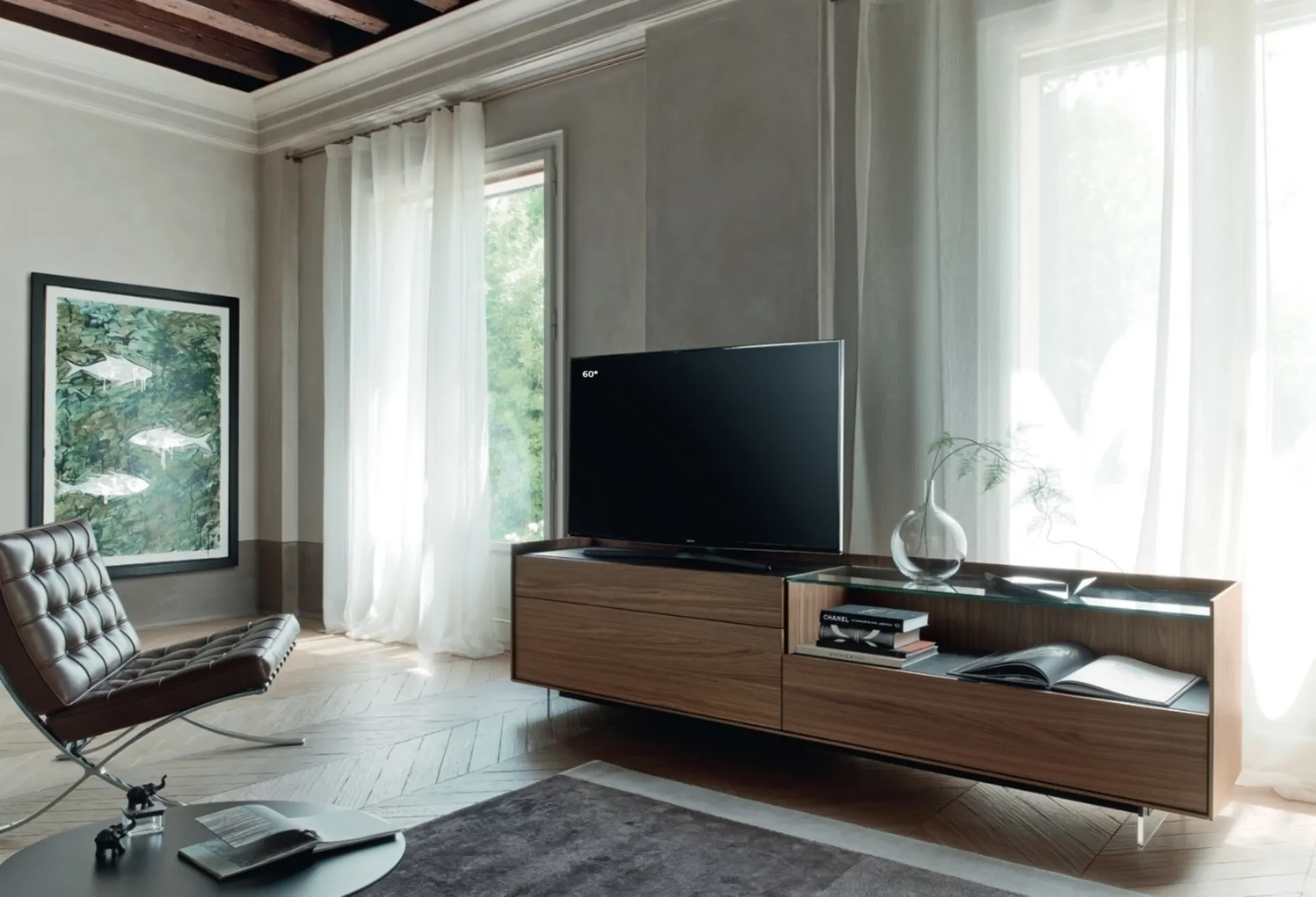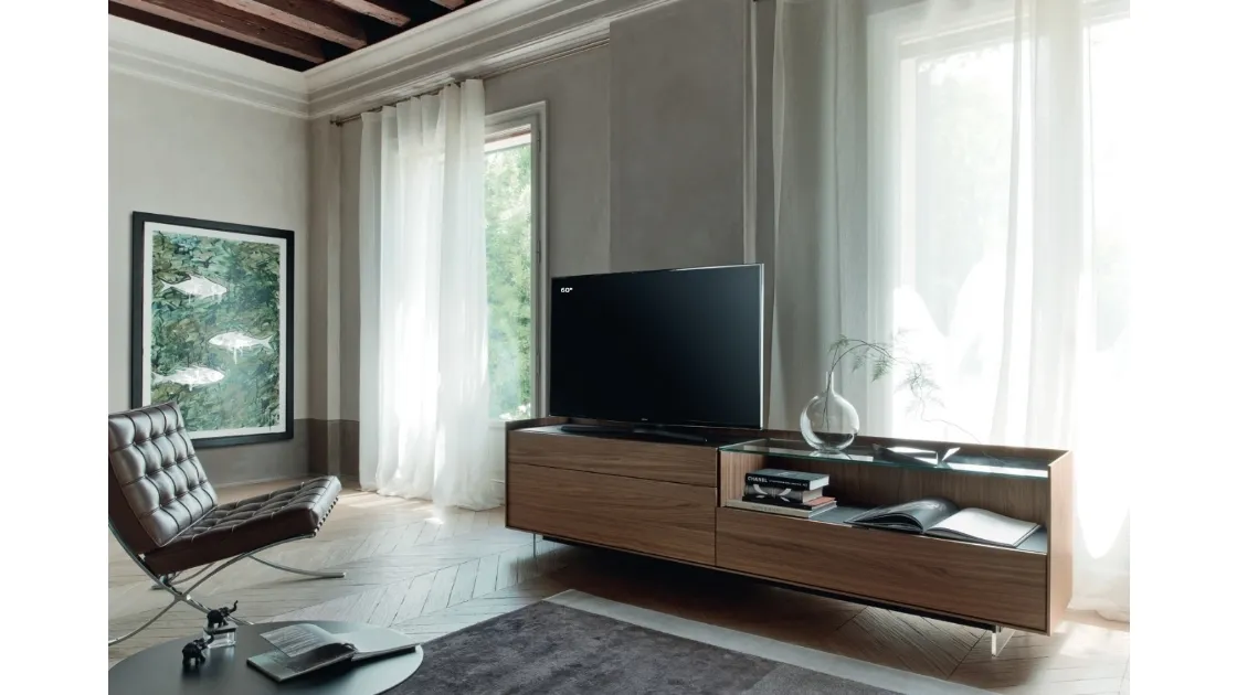 Mobile porta tv per il living Sangiacomo in legno: clicca e ottieni informazioni sul modello Cabaret 56B sx, ideale per spazi moderni.