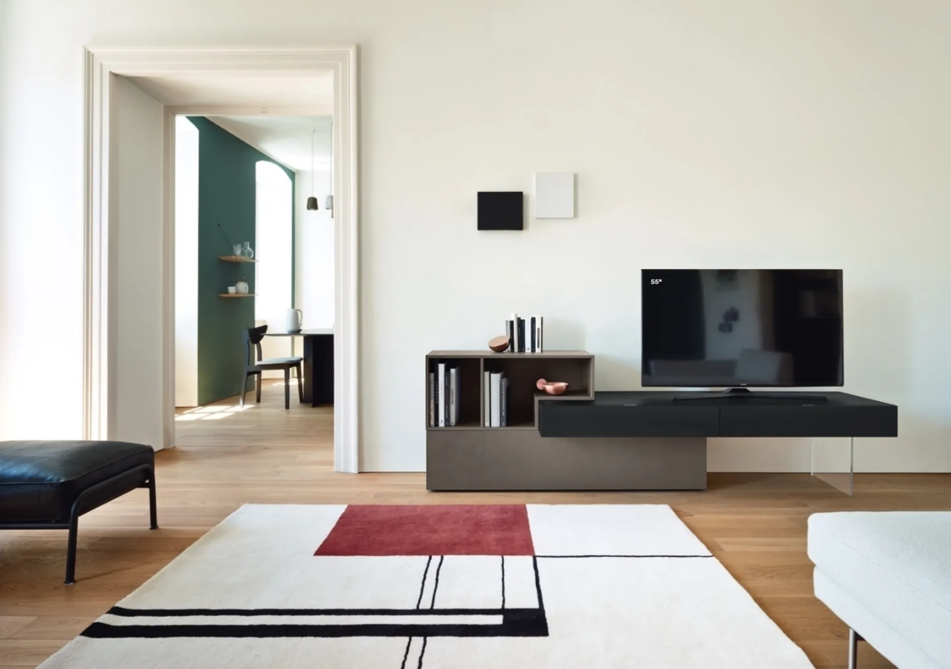 Mobile porta tv per il living Sangiacomo in legno: clicca e ottieni informazioni sul modello Lampo Open 5, ideale per spazi moderni.