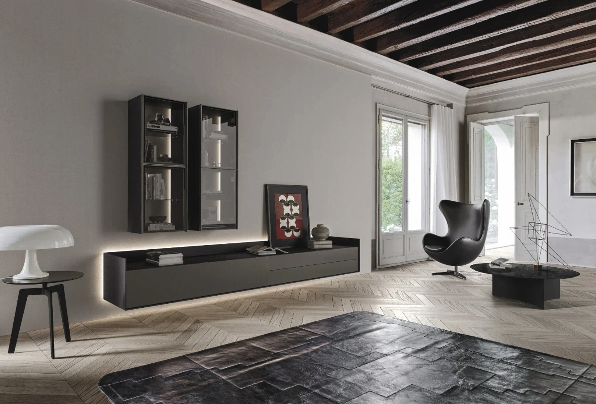 Mobili soggiorno in laccato opaco del brand Sangiacomo: clicca e scopri il modello Cabaret One 02 tra le più belle soluzioni per il living.