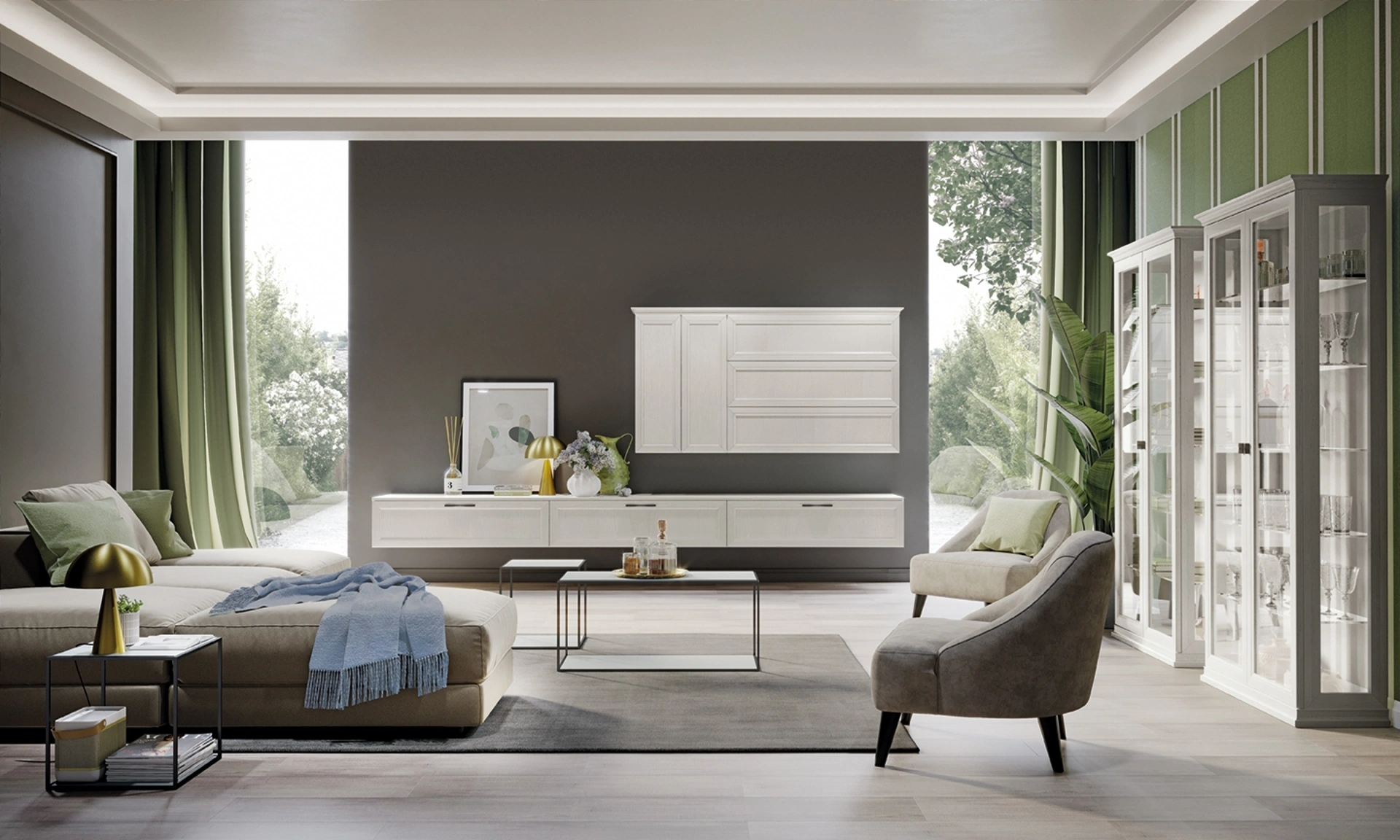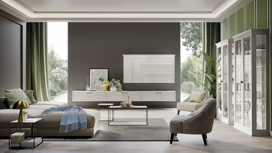 Pareti attrezzate e mobili soggiorno Colombini Casa: clicca e scopri il modello Arcadia AS013 e potrai valorizzare stanze classiche di ogni genere.