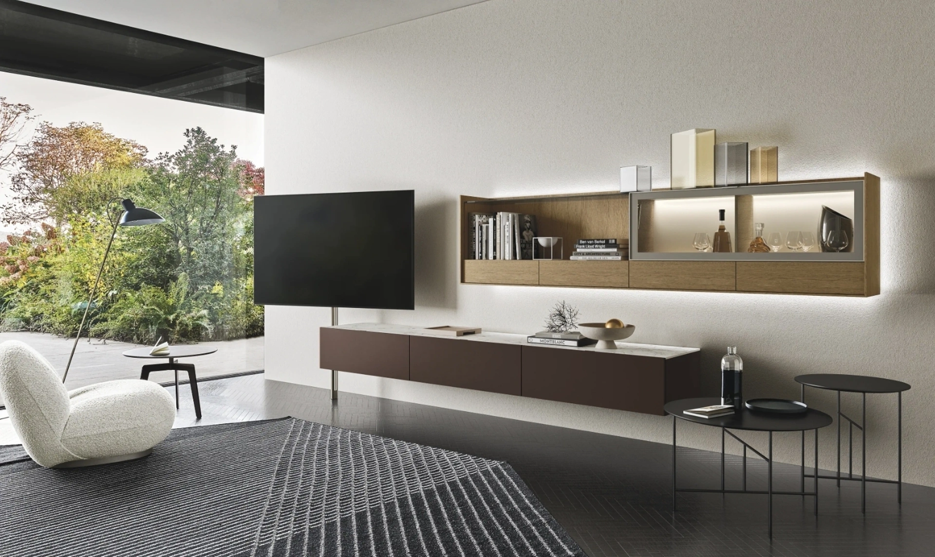 Pareti attrezzate e pensili Sangiacomo: clicca e scopri il modello Cabaret Glass 01 e potrai impreziosire stanze moderne di ogni genere.