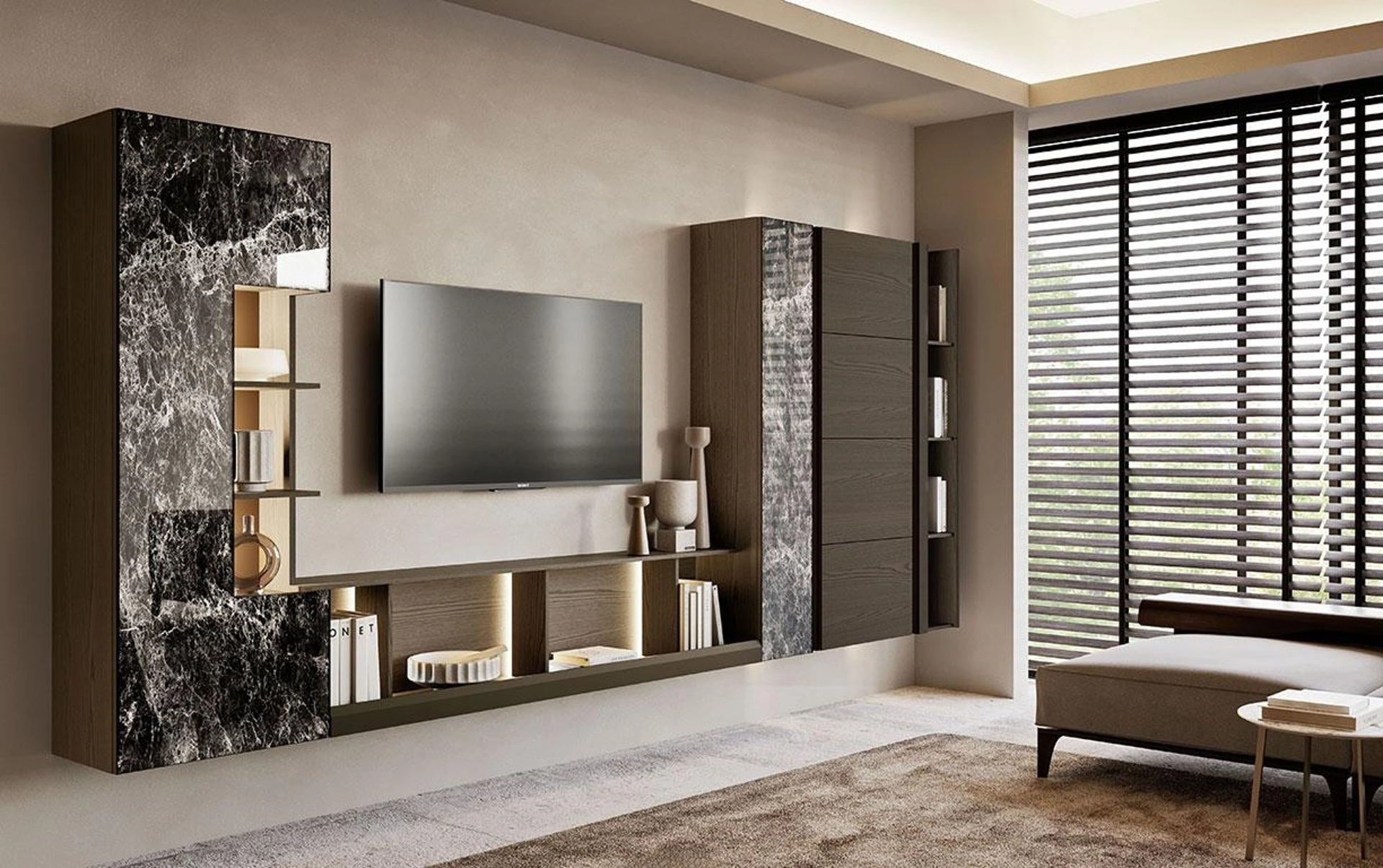 Se sei alla ricerca di mobili giorno e pareti attrezzate moderne, prediligi il modello Composizione Horizon 1001 di Mobilgam: clicca e ottieni informazioni!