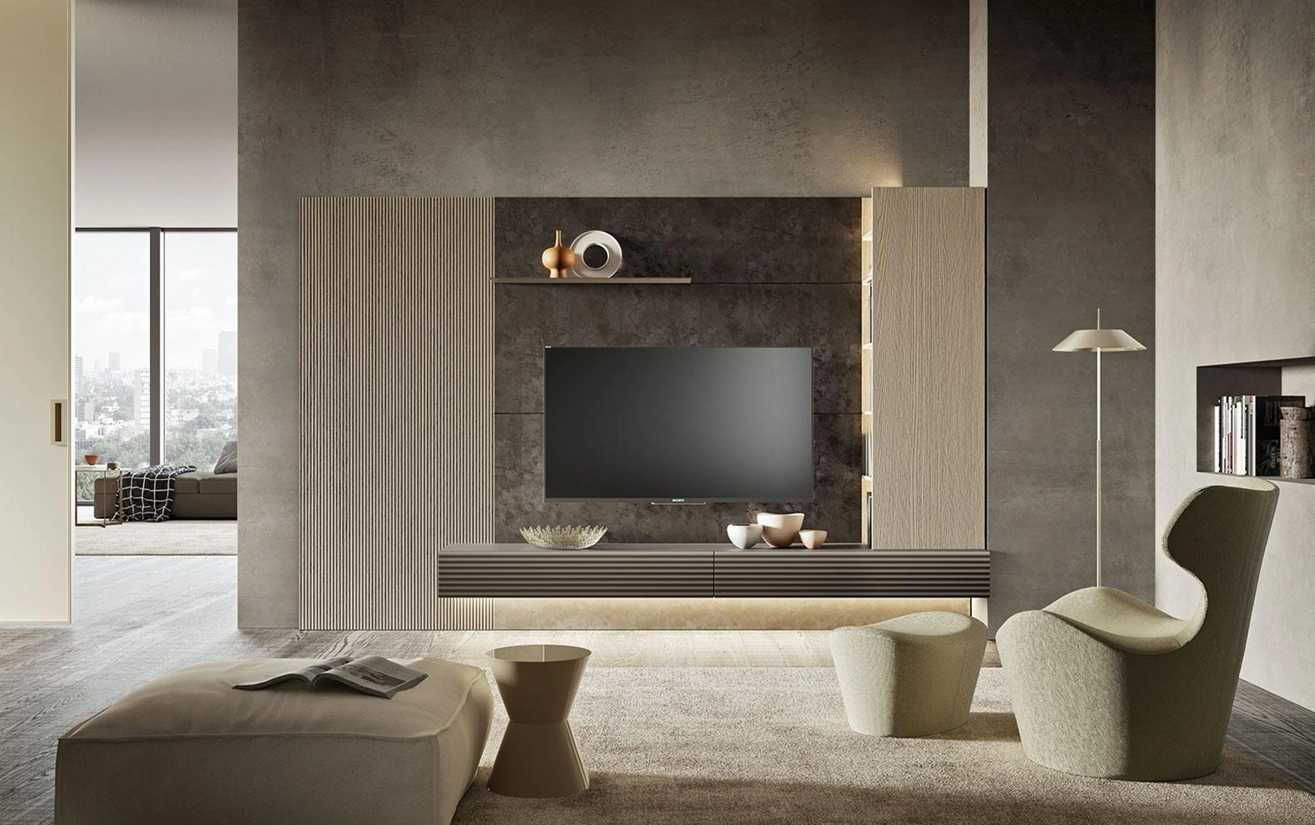 Vuoi progettare un soggiorno pratico e dinamico? Ti offriamo la parete attrezzata Composizione Horizon 1004 Mobilgam dalle linee decise moderne.
