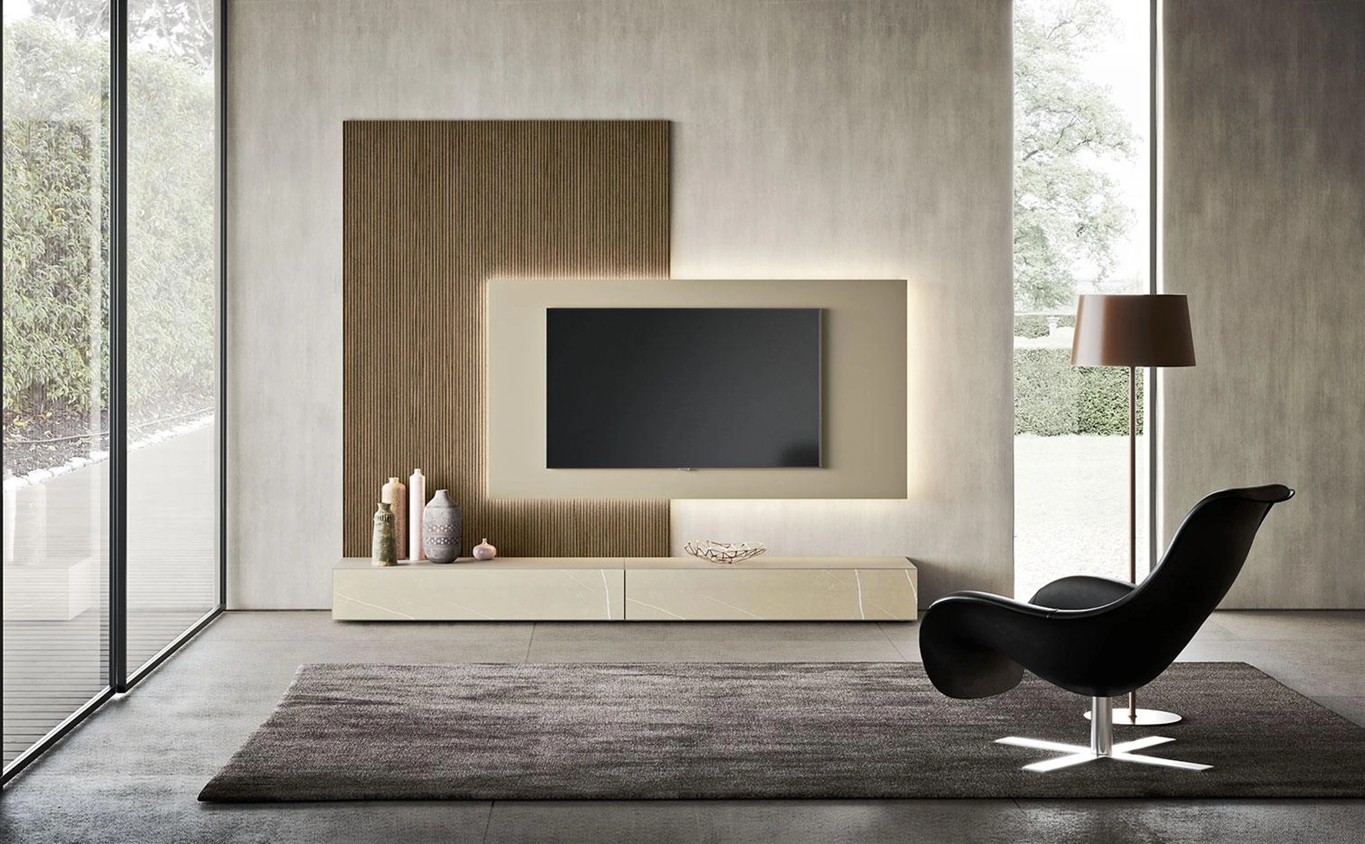 Se desideri ultimare un living pratico e operativo dalle linee moderne, ecco a te la parete attrezzata Composizione Horizon 1005 Mobilgam.