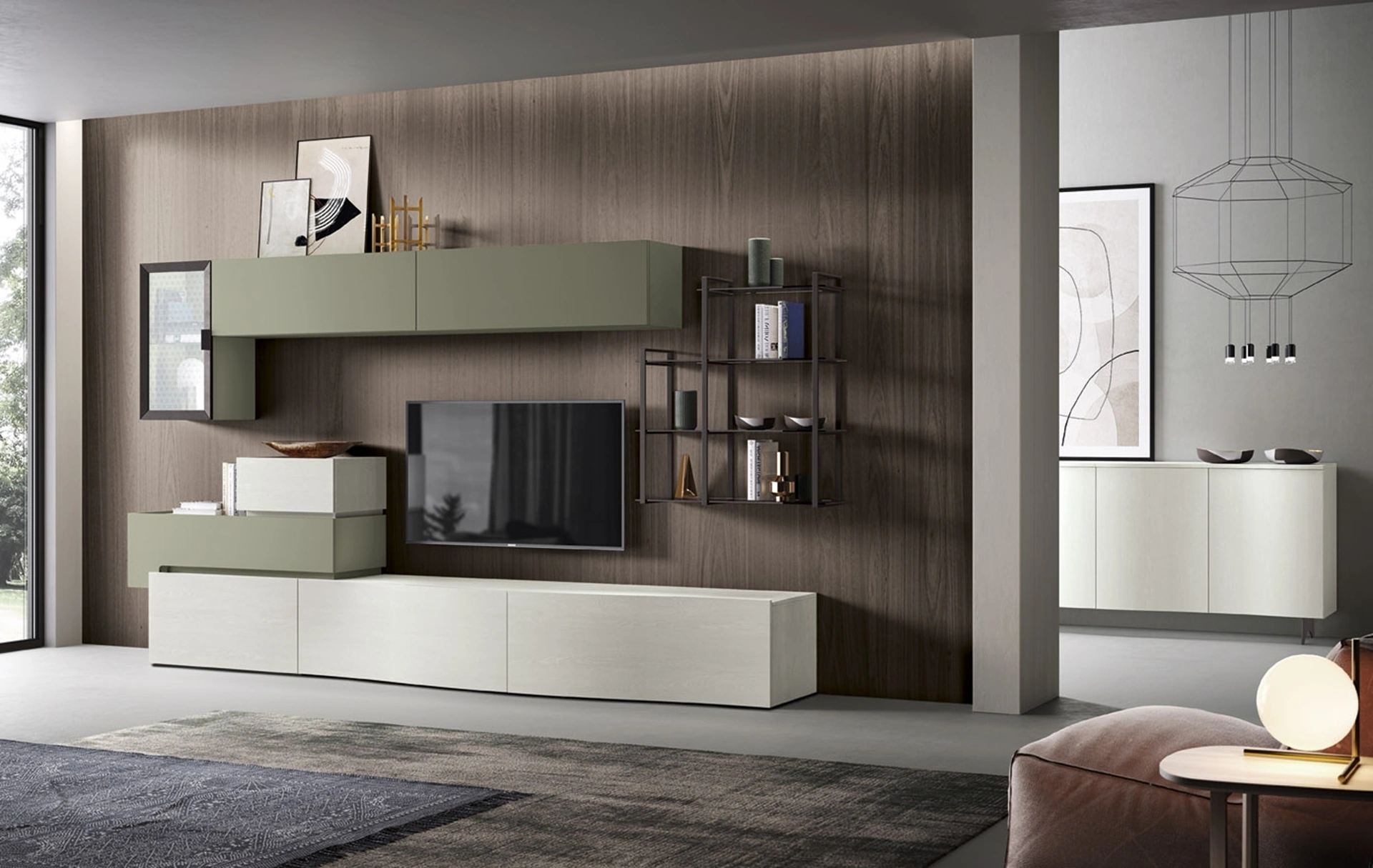 La Parete Attrezzata Soggiorno 08-2 di Corso 11 nell'immagine, con finitura in melaminico, risolve le più personali problematiche abitative di spazio e stile senza rinunciare alla ricerca estetica. Se cerchi arredi salvaspazio e realizzabili su misura per te, contattaci e ottieni informazioni sull'Arredamento Casa dei migliori produttori. Un po’ librerie, un po’ mobili contenitori ed espositori: le Pareti Attrezzate sono ideali per ottimizzare un luogo dinamico e operativo. Anche in un soggiorno non generoso, questo tipo di arredo riesce a ottimizzare gli spazi ottimizzando ogni angolo e garantendo massima componibilità tipica delle soluzioni moderne.
