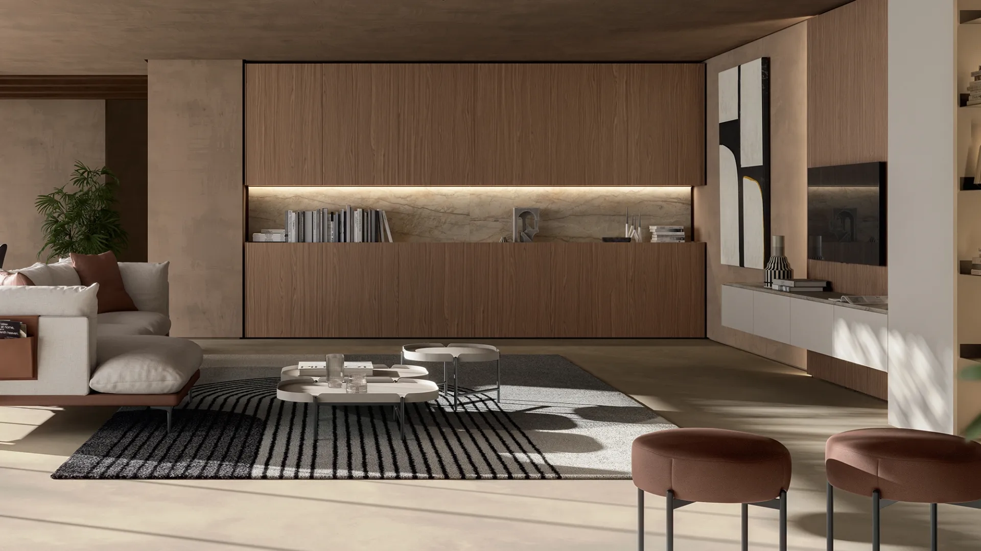 Se desideri ultimare un soggiorno dinamico e operativo dalle linee moderne, ecco a te la parete attrezzata DA45 Noce Biondo Dall'Agnese.