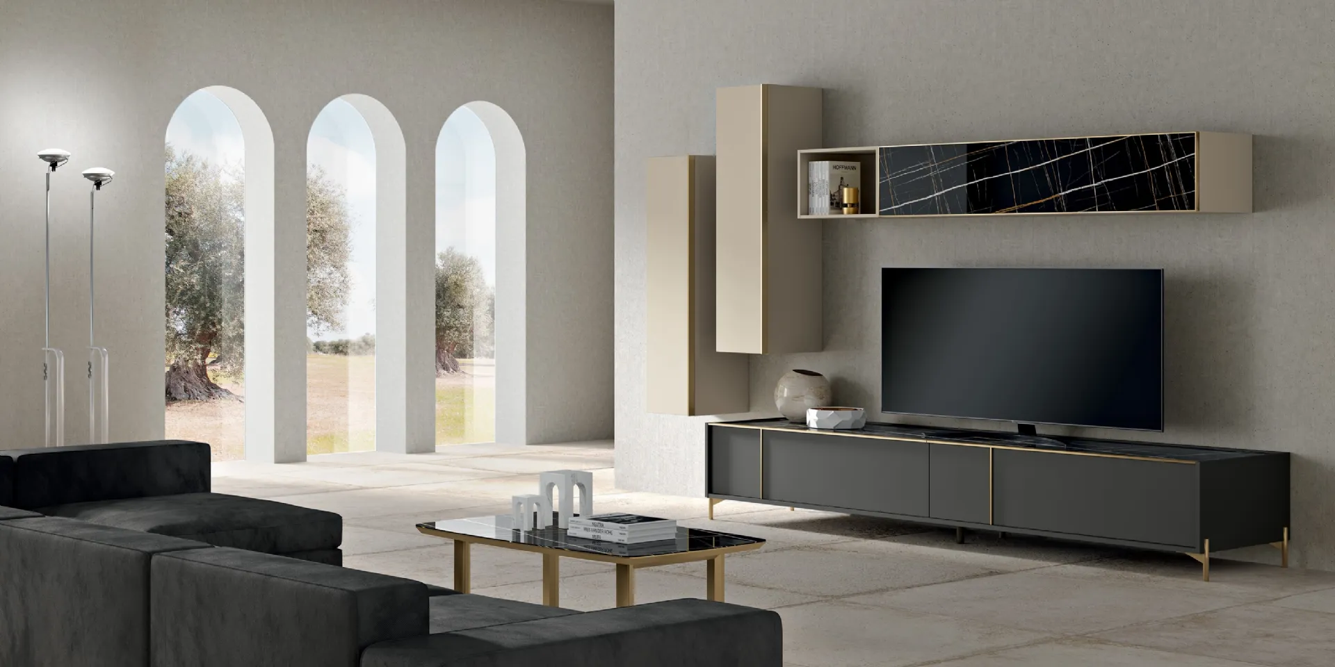 Pareti attrezzate e pensili Spar: clicca e scopri il modello Deluxe P07 Grey e potrai impreziosire stanze moderne di ogni tipo.