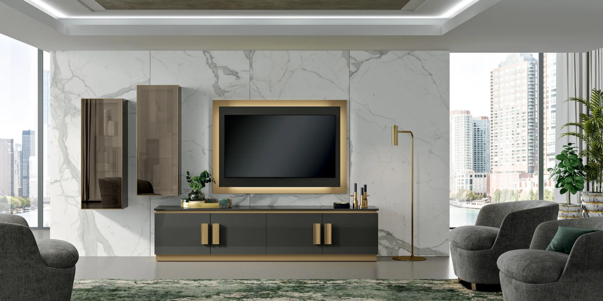 Se desideri completare un soggiorno dinamico e operativo dalle linee moderne, ti offriamo la parete attrezzata Deluxe P63 Suite Spar.