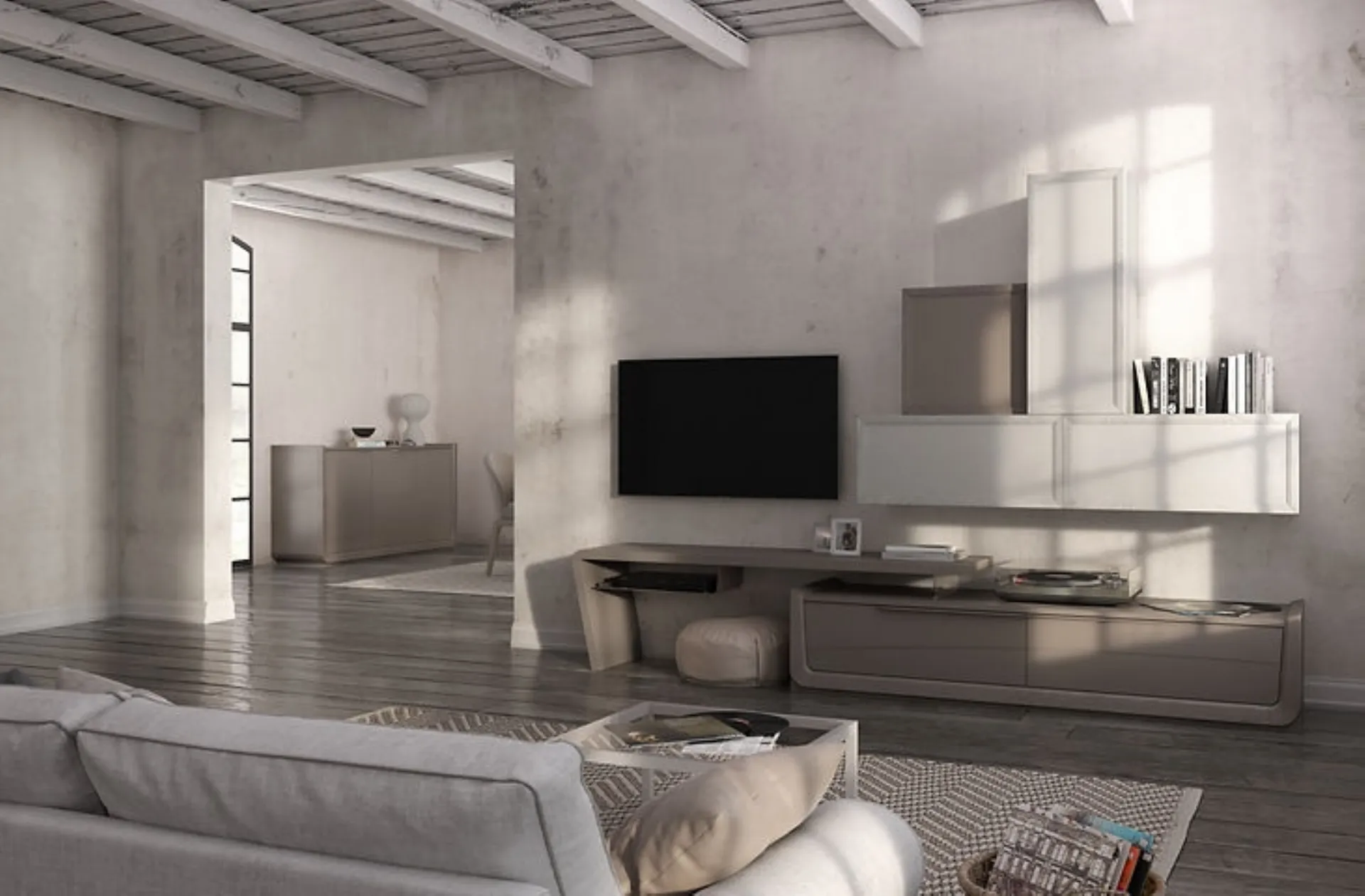 Pareti attrezzate e mobili giorno Fasolin: clicca e scopri il modello Desi 67D08 Madreperla e Creta e potrai valorizzare stanze moderne di ogni tipo.