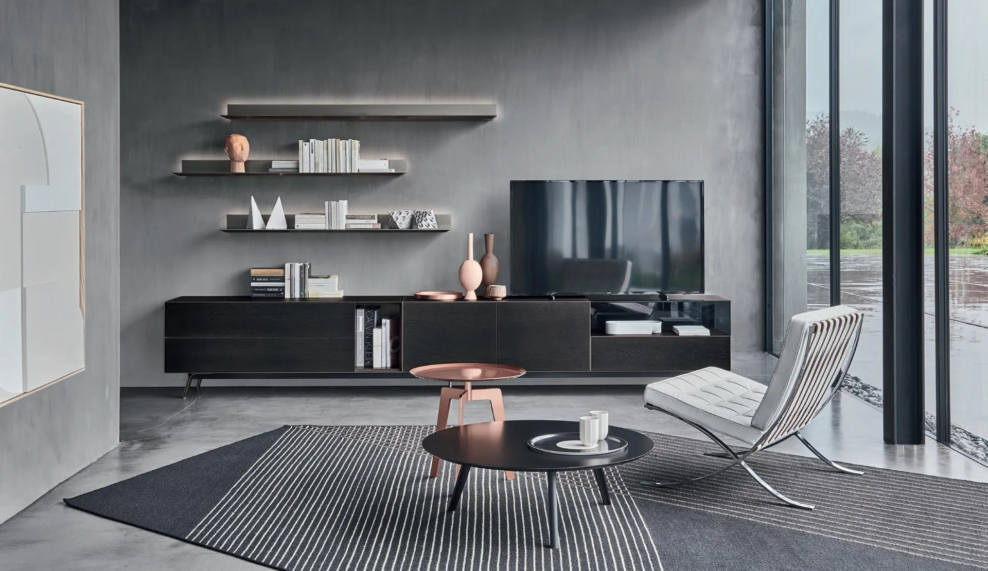 Un po’ librerie, un po’ mobili contenitori ed espositori: le Pareti Attrezzate sono ideali per arredare uno spazio pratico e dinamico.