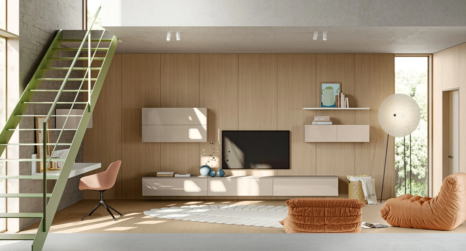 Pareti attrezzate e pensili Colombini Casa: clicca e scopri il modello Eclettica EG002 e potrai arricchire stanze moderne di ogni genere.