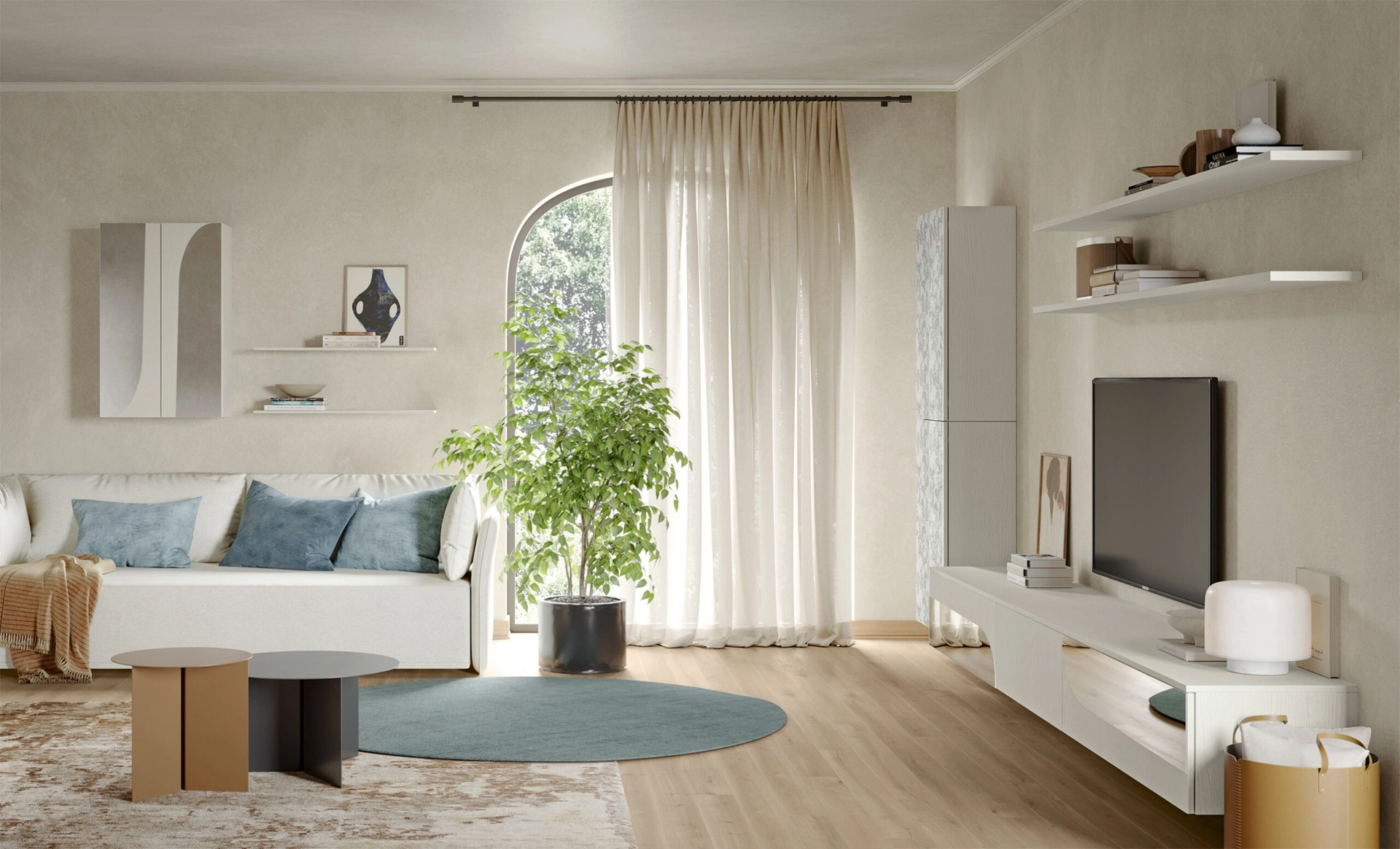 Se desideri ultimare un soggiorno pratico e operativo dalle linee moderne, ti presentiamo la parete attrezzata Eclettica EG004 Colombini Casa.