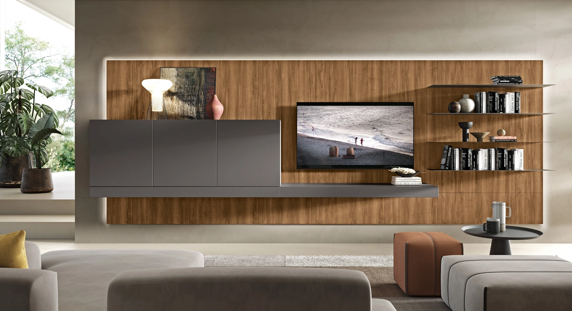 Pareti attrezzate e mobili giorno Adriatica: clicca e scopri il modello Evolution H2O 02 e potrai completare stanze moderne di ogni genere.