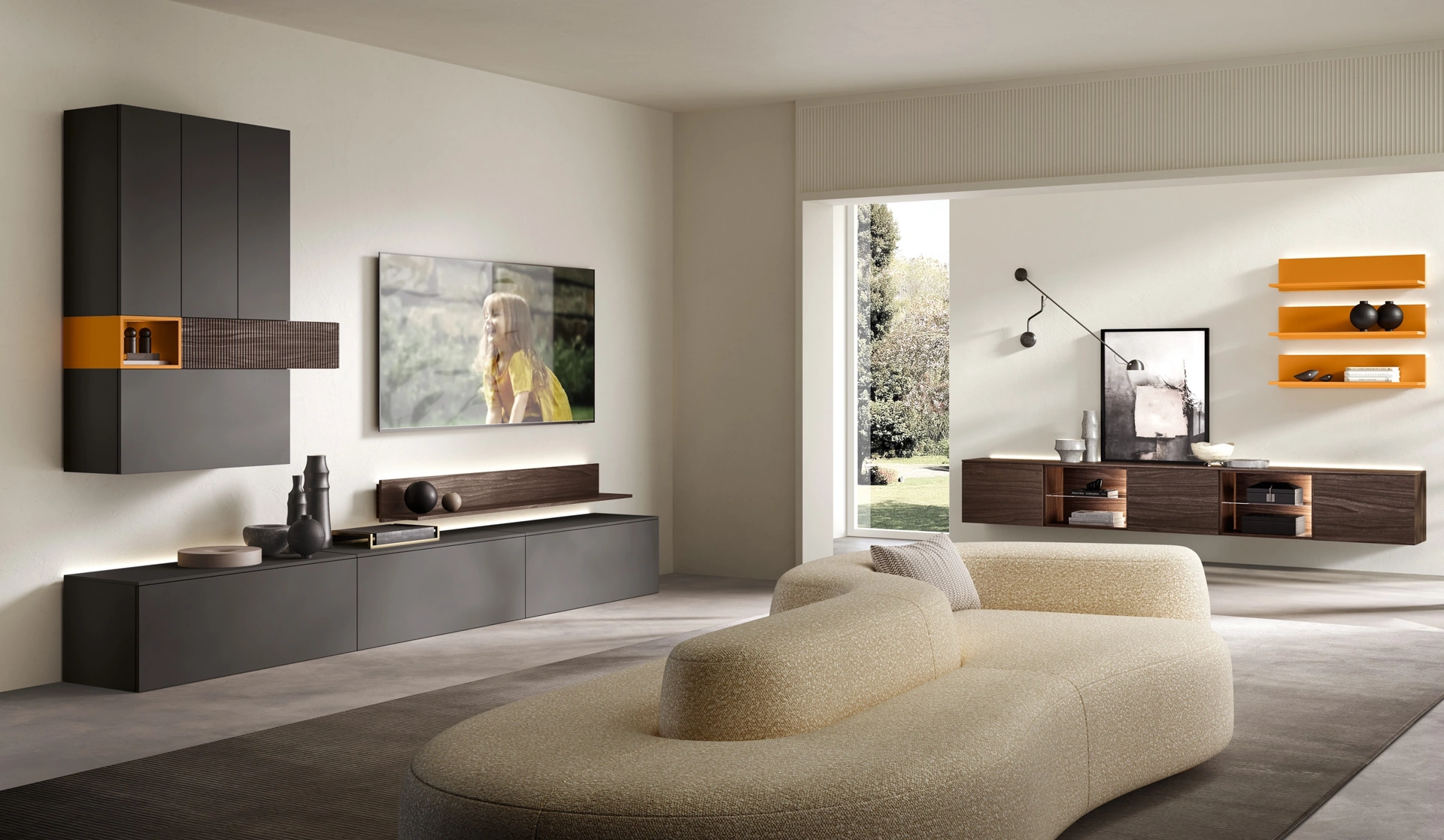Se vuoi completare un living pratico e dinamico dalle linee moderne, ti presentiamo la parete attrezzata Evolution H2O 06 Adriatica.