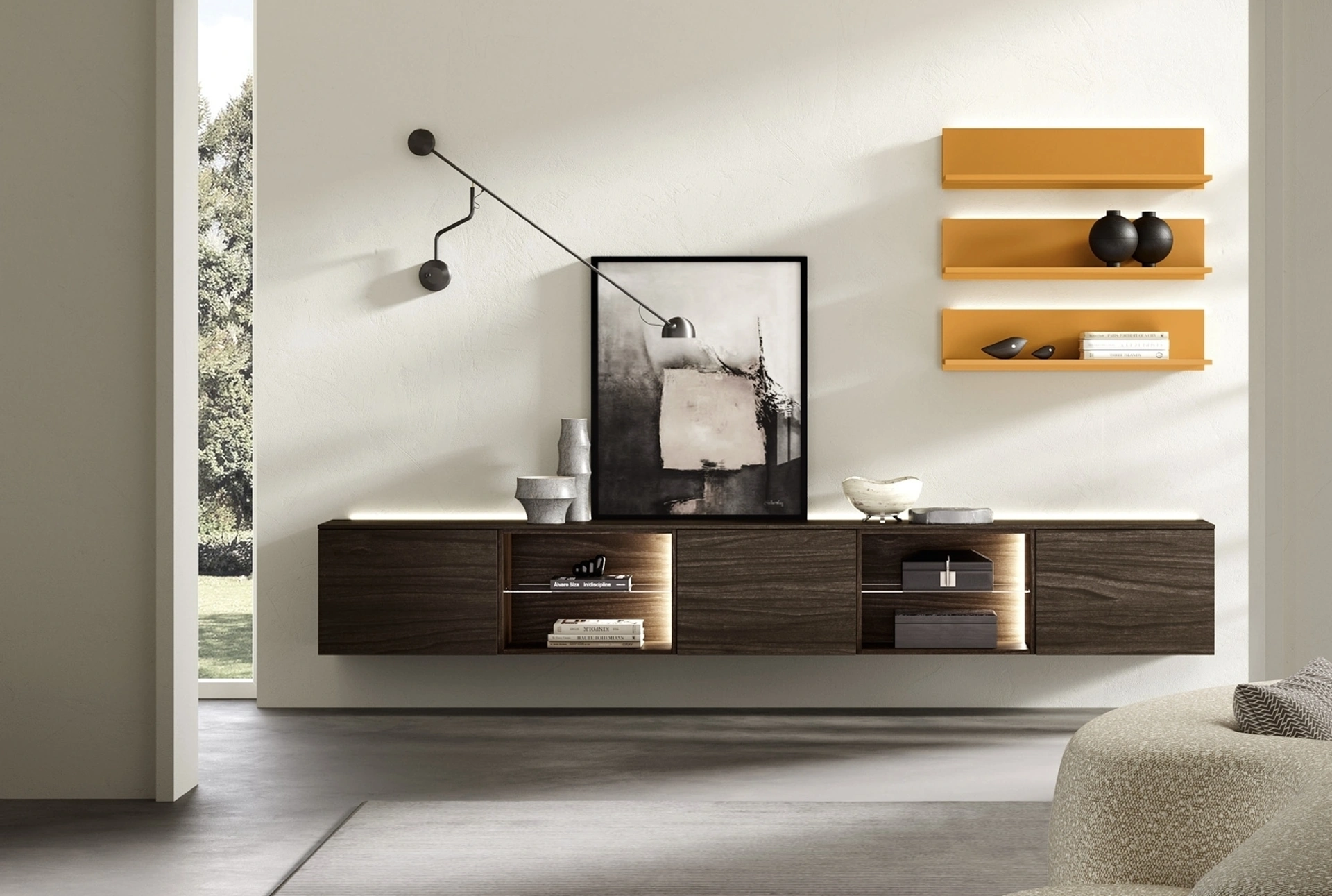 Pareti attrezzate e pensili Adriatica: clicca e scopri il modello Evolution H2O 07 e potrai valorizzare stanze moderne di ogni genere.