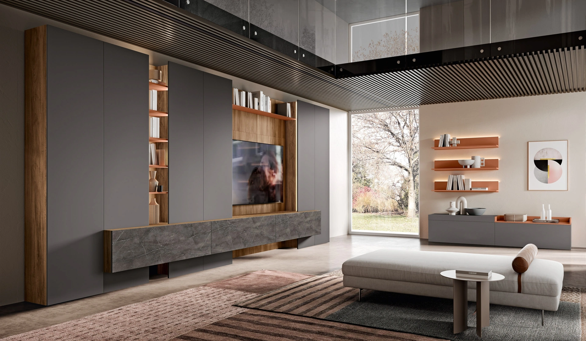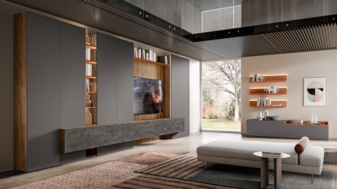 A muro oppure freestanding per ottimizzare un open space, le più belle composizioni d’arredo sul mercato arredano il soggiorno ottimizzando lo spazio disponibile. La Parete Attrezzata Evolution H2O 14 e 15 di Adriatica in foto ha l'alta componibilità e diverse possibilità di personalizzazione: scopri la parete attrezzata qui disponibile e contattaci per maggiori informazioni e preventivi. Per soddisfare le eterogenee problematiche abitative di ognuno, brand mette a disposizione dei suoi clienti un ricco catalogo Pareti Attrezzate moderne particolarmente funzionali e caratterizzate da un tocco di stile.