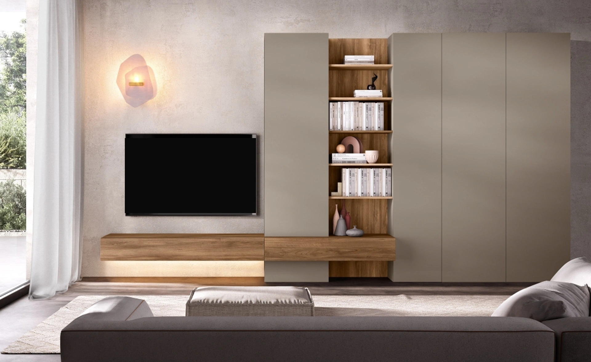 Questa parete attrezzata è una delle soluzioni del brand e ti consentirà di arredare il living secondo le più particolari esigenze abitative. Attraverso un gioco dinamico di accostamenti fra accessori a giorno o vani chiusi, le Pareti Attrezzate moderne arredano il living usufruendo al meglio di ogni spazio. Le Pareti Attrezzate hanno acquisito un posto fondamentale nella zona giorno delle nostre case: sono arredi plurifunzionali e salvaspazio sempre realizzabili su misura.