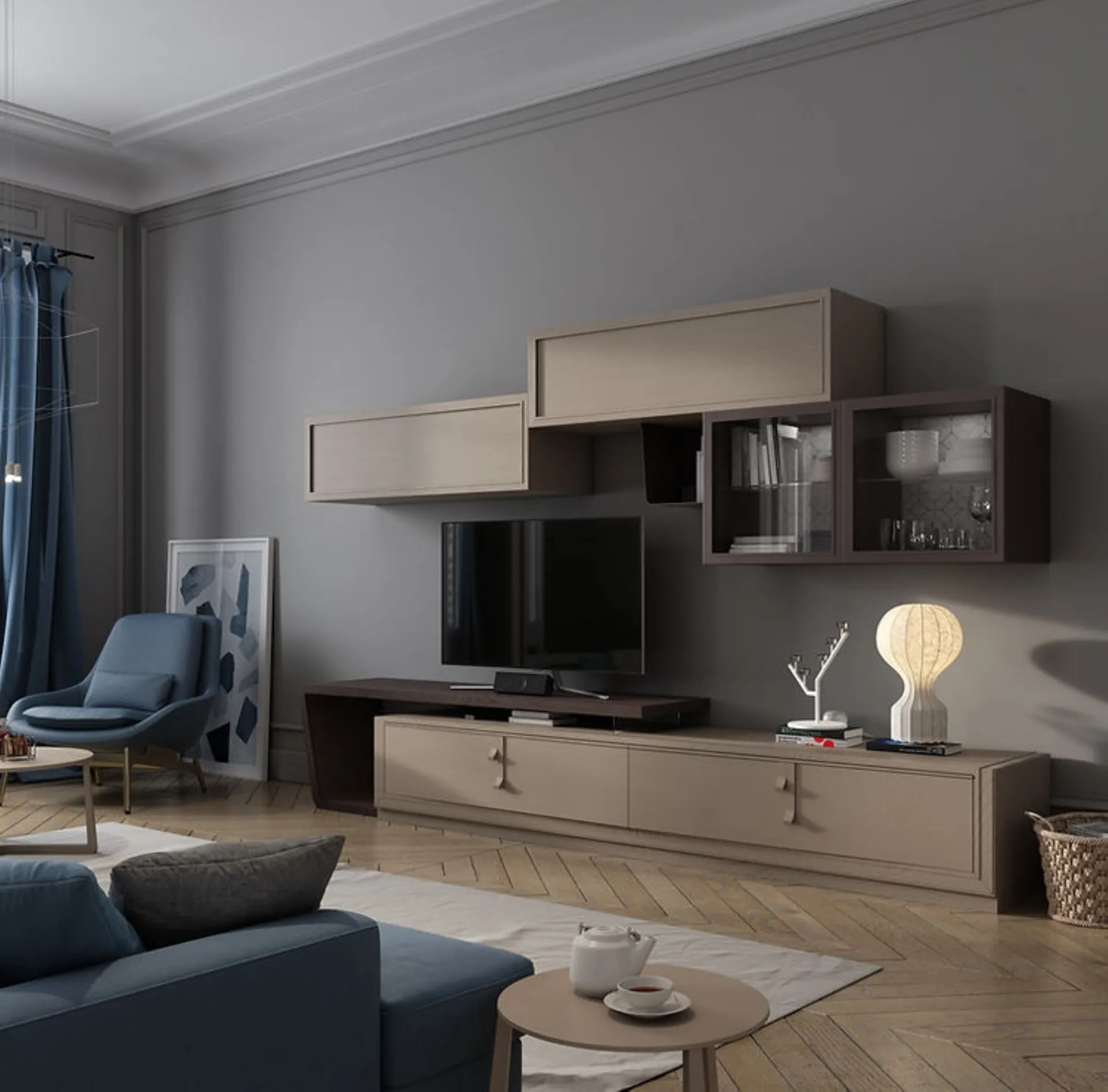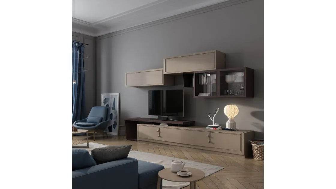 Pareti attrezzate e mobili soggiorno Fasolin: clicca e scopri il modello Flor 47F24 Avena e Cuoio e potrai arricchire stanze moderne di ogni genere.