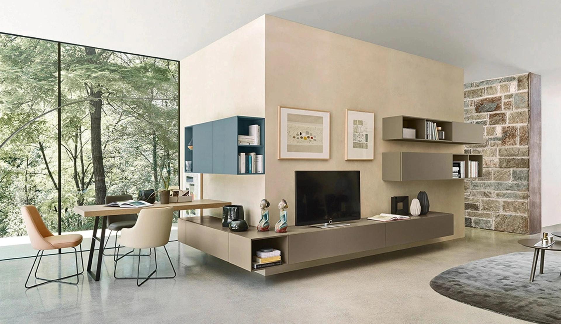 Se desideri ultimare un soggiorno pratico e dinamico dalle linee moderne, ti offriamo la parete attrezzata Lampo 003 Sangiacomo.
