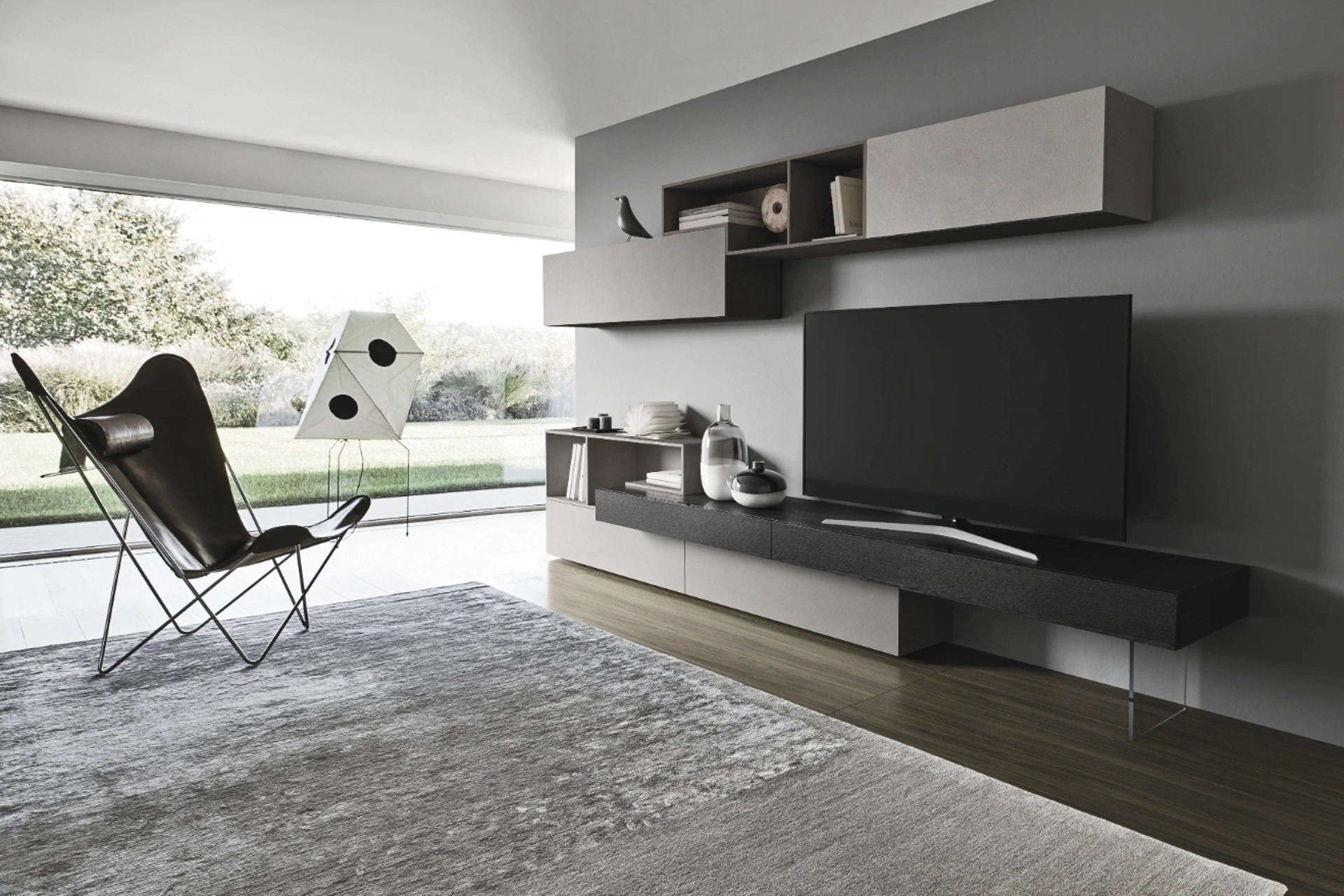Vuoi ammobiliare un soggiorno operativo e pratico? Ti offriamo la parete attrezzata Lampo 029 Sangiacomo dalle forme decise moderne.