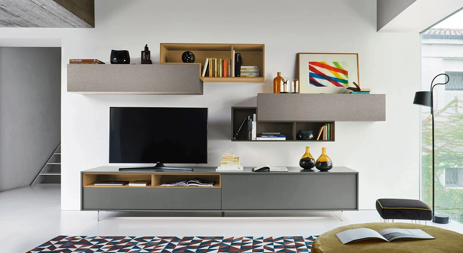 Se vuoi completare un living pratico e operativo dalle linee moderne, ecco a te la parete attrezzata Lampo 042 Sangiacomo.