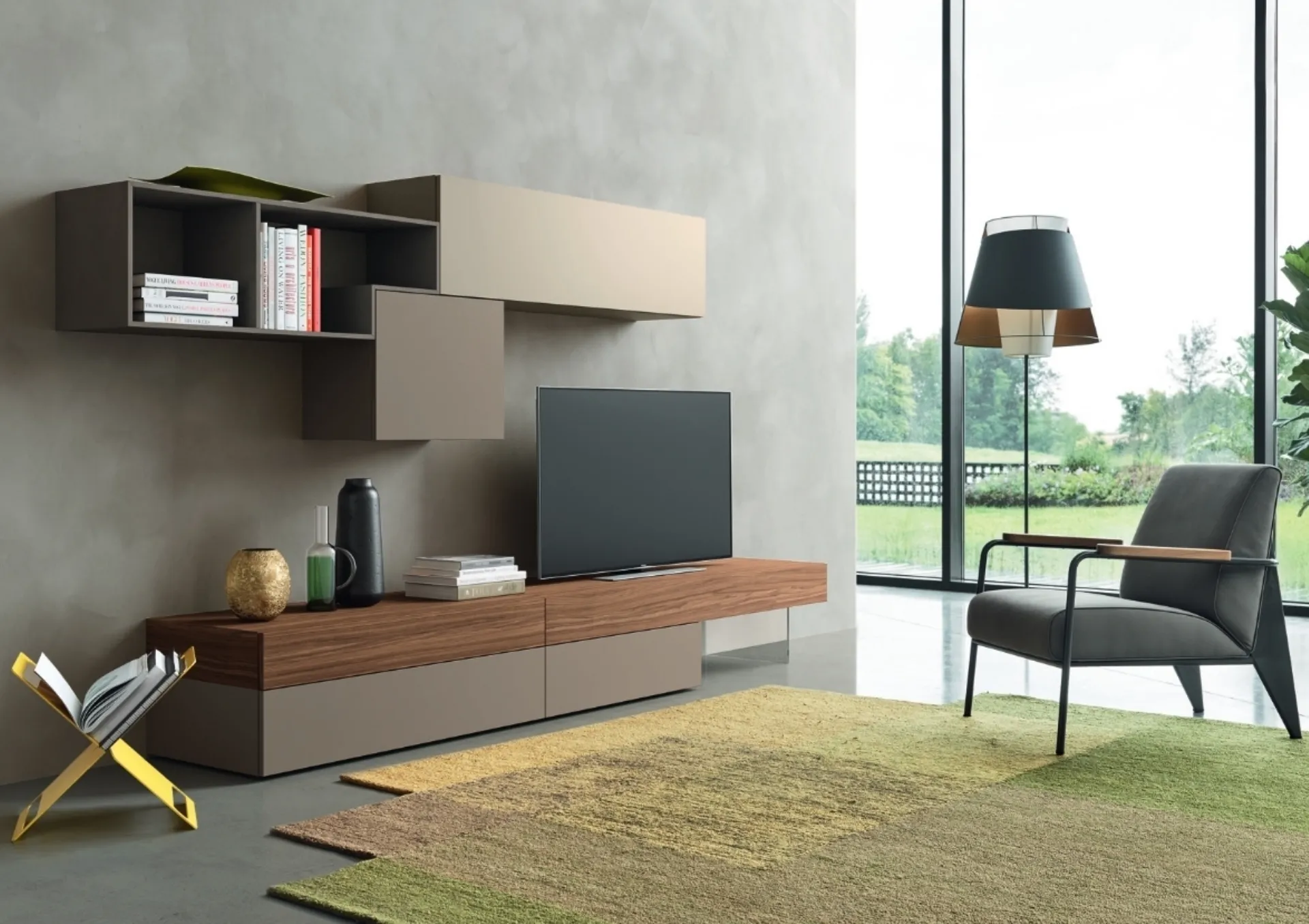 Vuoi allestire un soggiorno pratico e operativo? Ti offriamo la parete attrezzata Lampo L6C06 Sangiacomo dalle linee decise moderne.