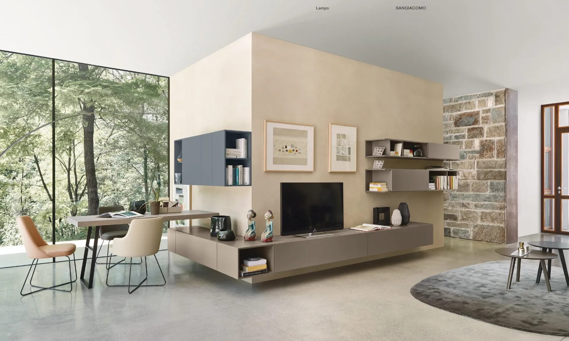 Se vuoi completare un living pratico e operativo dalle linee moderne, ecco a te la parete attrezzata Lampo L6C12 A Sangiacomo.