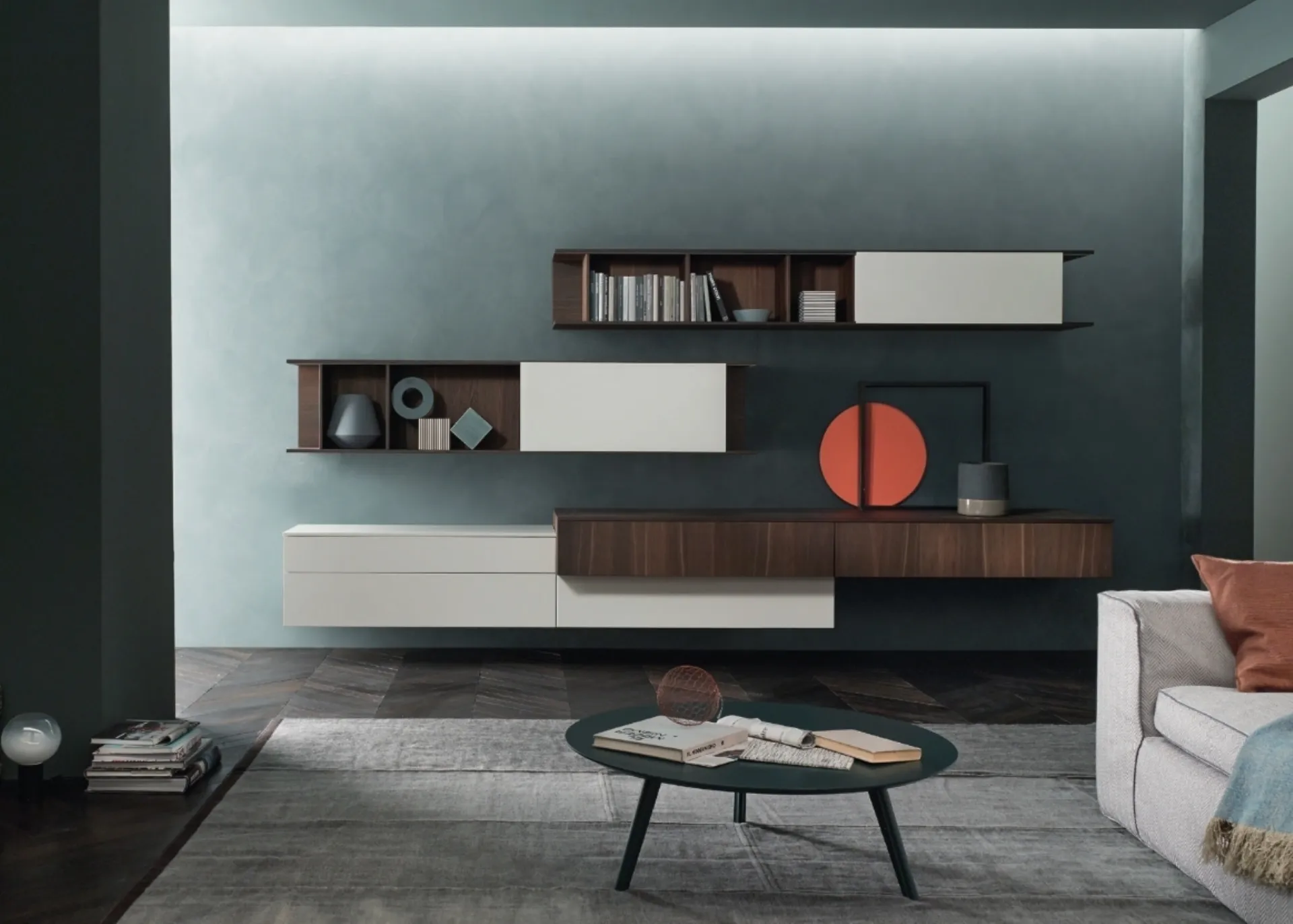 Vuoi ammobiliare un soggiorno pratico e dinamico? Ecco a te la parete attrezzata Lampo L6C14 Sangiacomo dalle forme decise moderne.