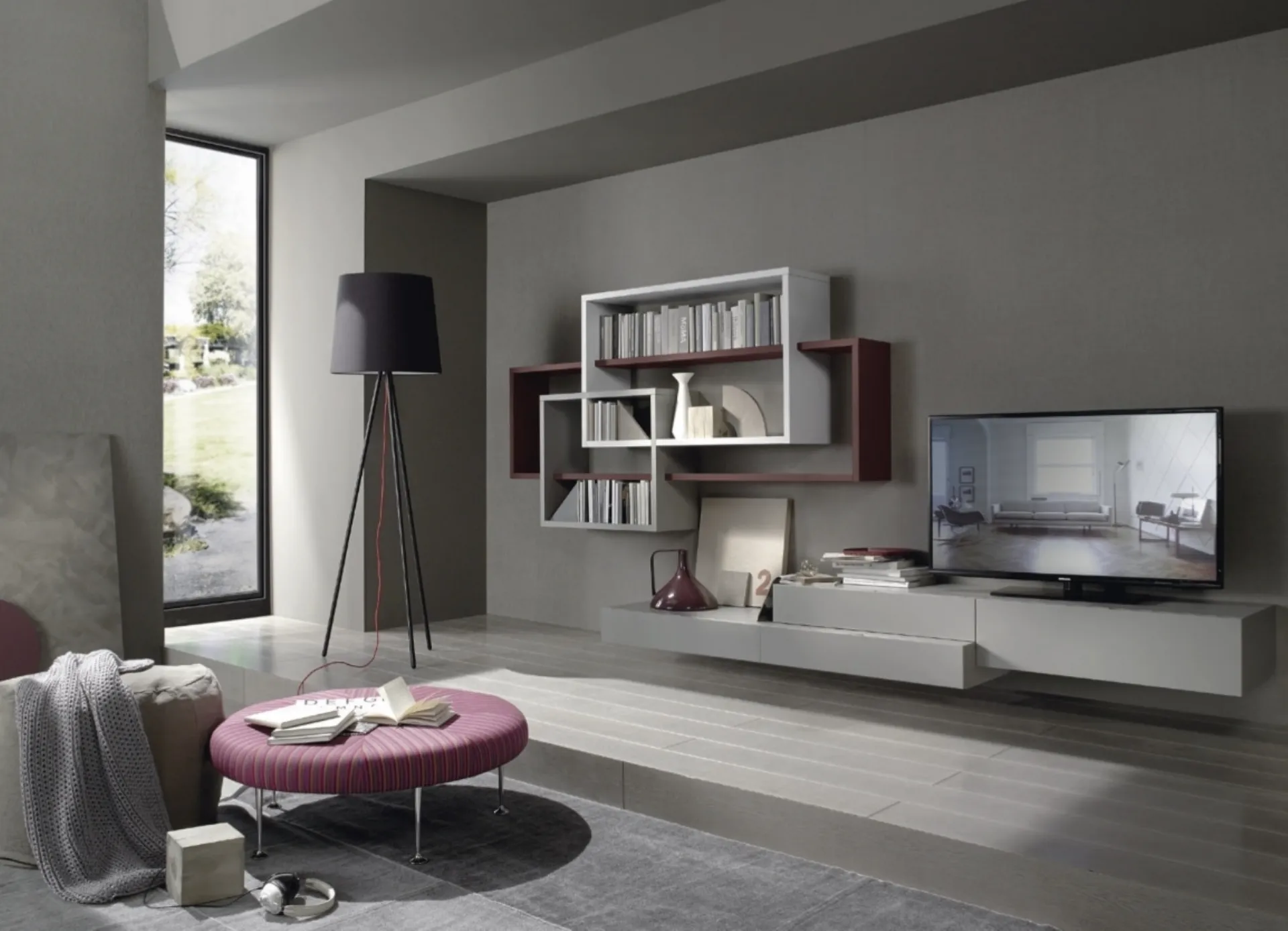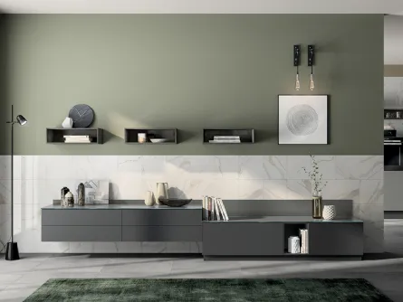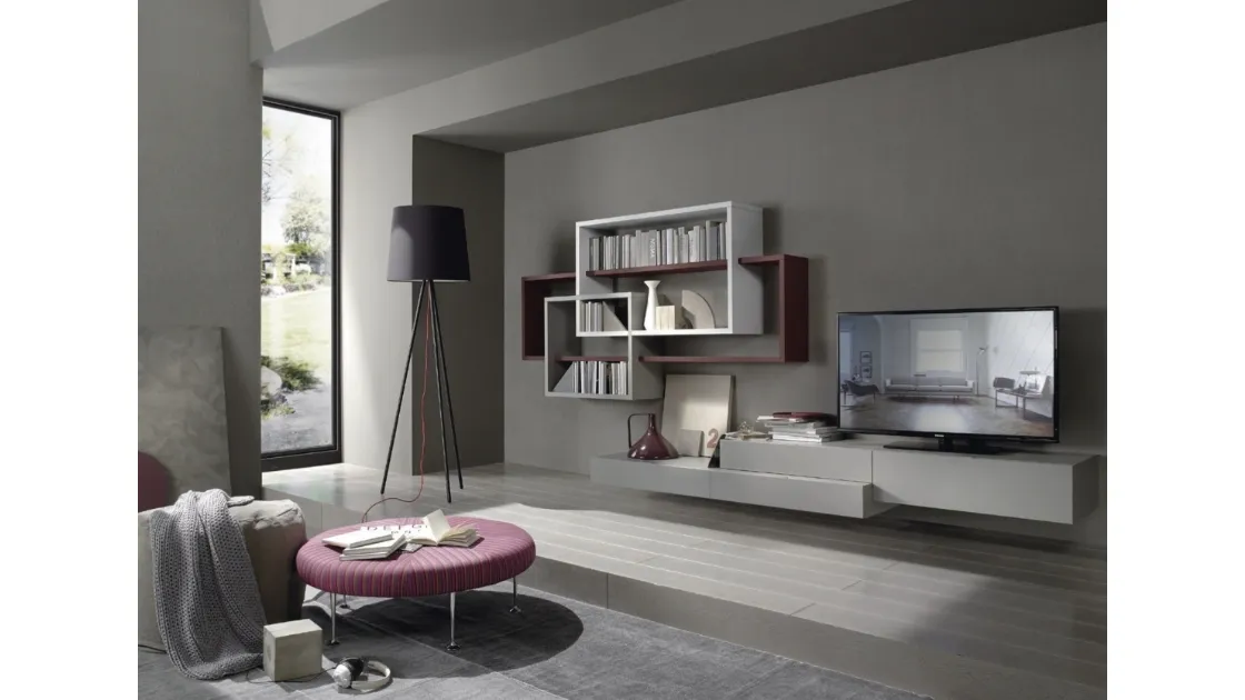 Se vuoi ultimare un soggiorno dinamico e operativo dalle linee moderne, ecco a te la parete attrezzata Lampo L6C42 Sangiacomo.