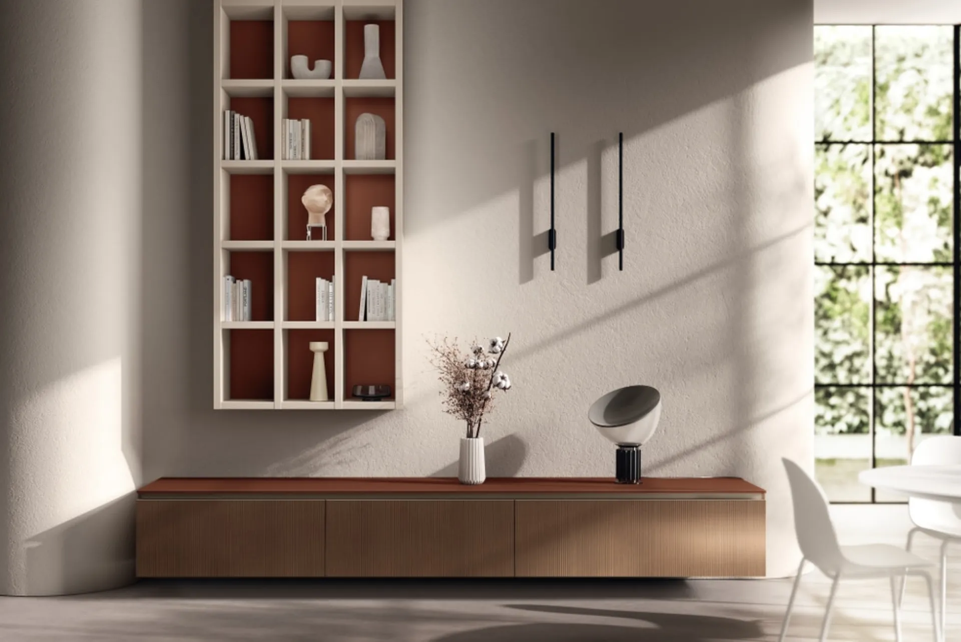 Se vuoi completare un soggiorno pratico e dinamico dalle linee moderne, ti offriamo la parete attrezzata Living Mira Cottage Scavolini.
