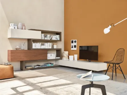 Se vuoi ultimare un soggiorno pratico e operativo dalle linee moderne, ti offriamo la parete attrezzata Living Motus in Laccato opaco Ruggine Scavolini.