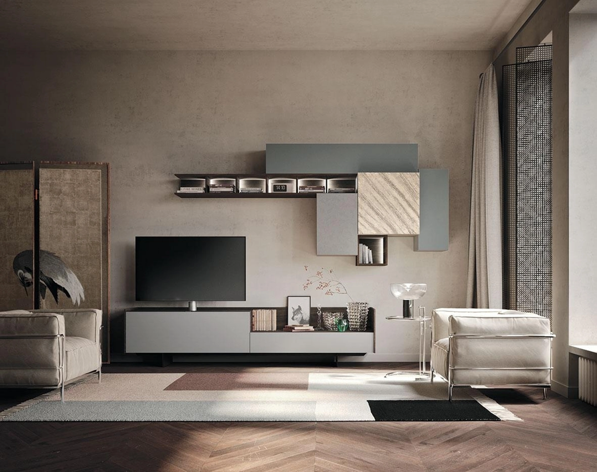 Se desideri completare un soggiorno pratico e dinamico dalle linee moderne, ecco a te la parete attrezzata Composizione Horizon 909 Mobilgam.