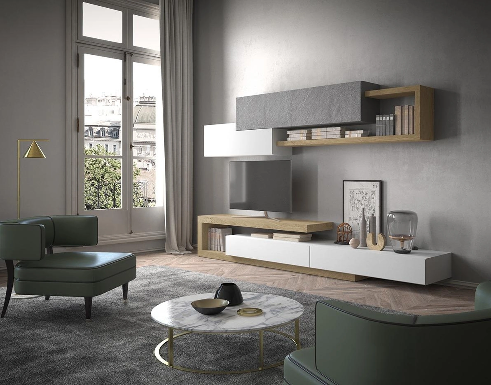 Attraverso un gioco dinamico di accostamenti fra componenti a giorno o vani chiusi, le Pareti Attrezzate moderne arredano il soggiorno usufruendo al meglio di ogni spazio. Questa parete attrezzata è una delle soluzioni dell'azienda e ti permetterà di progettare la zona giorno secondo le più personali esigenze abitative. Le Pareti Attrezzate hanno conquistato un posto di primo piano nella zona giorno delle nostre case: sono mobili plurifunzionali e salvaspazio sempre realizzabili su misura.