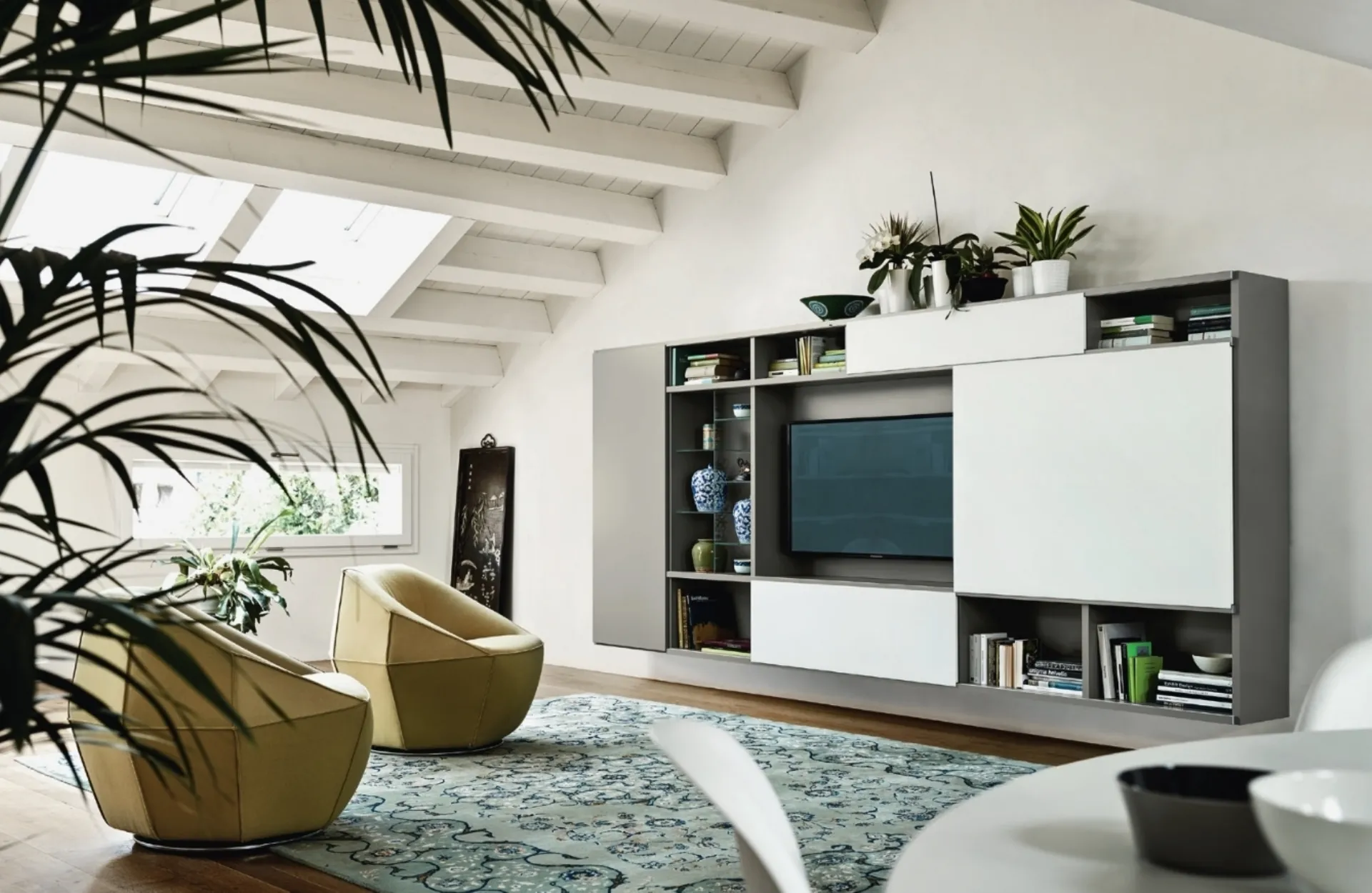 Pareti attrezzate e mobili giorno Sangiacomo: clicca e scopri il modello Modo M6C75 e potrai impreziosire stanze moderne di ogni genere.
