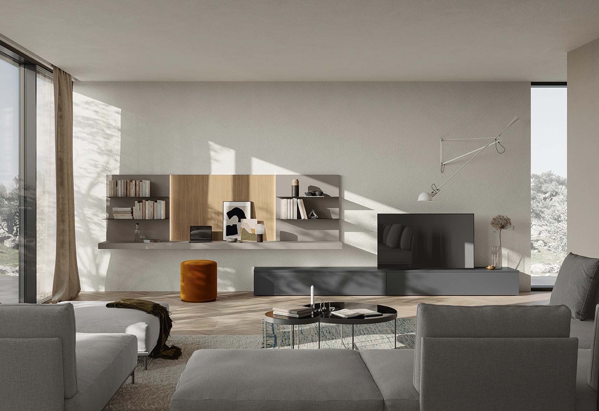 Attraverso un gioco dinamico di accostamenti fra accessori a giorno o vani chiusi, le Pareti Attrezzate moderne arredano il soggiorno sfruttando bene ogni spazio. Per informazioni e preventivi sulla Parete Attrezzata Night & Day L02 di Colombini Casa in foto contattaci! Il modello proposto è realizzato in melaminico, ma grazie ad una grande varietà di texture, tonalità e conformazioni, potrà adattarsi a stili di ogni genere. Le Pareti Attrezzate hanno conquistato un posto fondamentale nella zona giorno delle nostre case: sono arredi plurifunzionali e salvaspazio sempre realizzabili su misura.