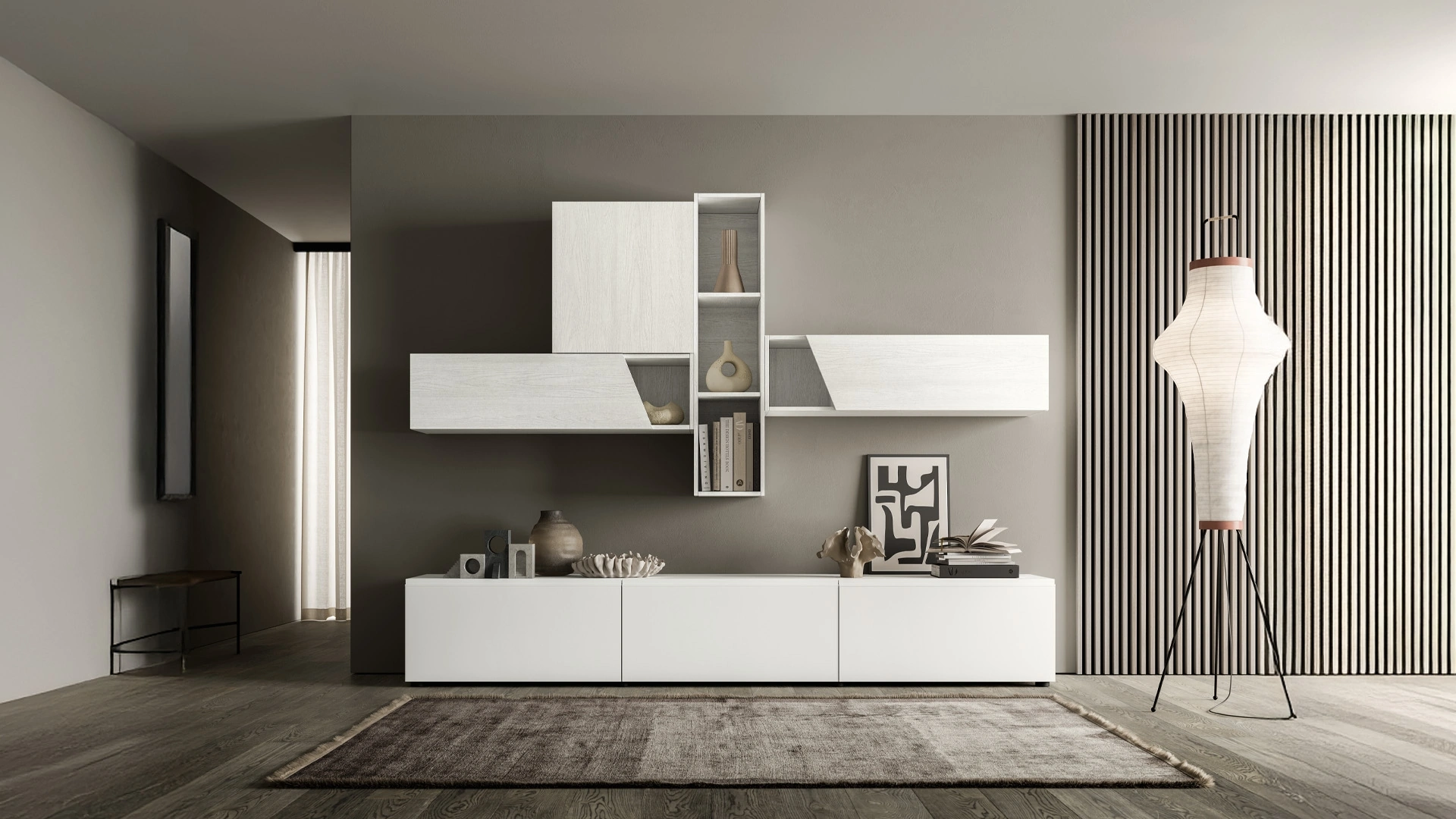 SantaLucia propone innovativi modelli di mobili soggiorno, diversi per stile e forme, finiture e componenti: scopri in negozio l'Arredamento Casa dei migliori brand. I mobili soggiorno in melaminico dalle linee moderne come il modello nell'immagine sono veramente eclettici e capaci di arredare il soggiorno usufruendo al meglio di ogni angolo. Lasciati affascinare da un ricco catalogo di arredi per la zona giorno e troverai la parete attrezzata che fa per te. Dato che il living deve essere uno spazio ben organizzato e bello a vedersi, sono necessari alcuni arredi belli e pratici come le Pareti Attrezzate.