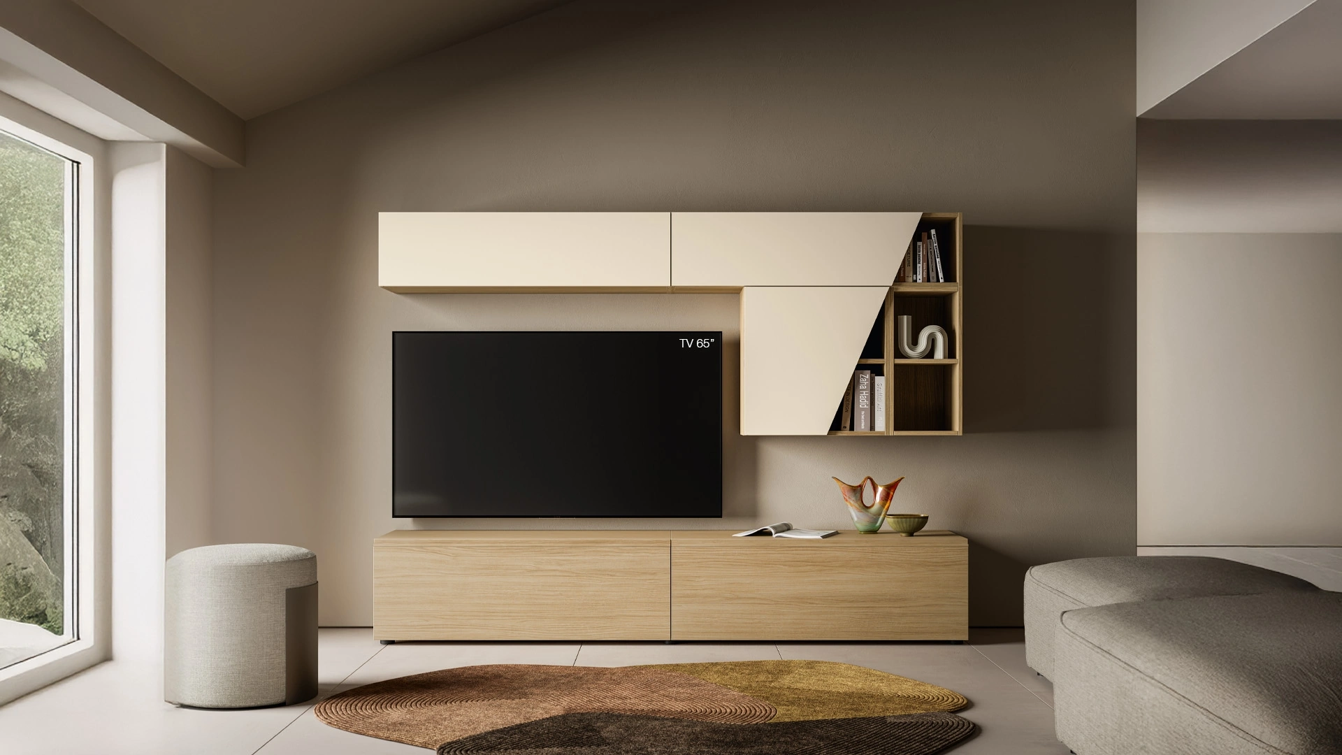 Vuoi progettare un soggiorno pratico e operativo? Ti offriamo la parete attrezzata Pratico PTG427 SantaLucia dalle linee decise moderne.
