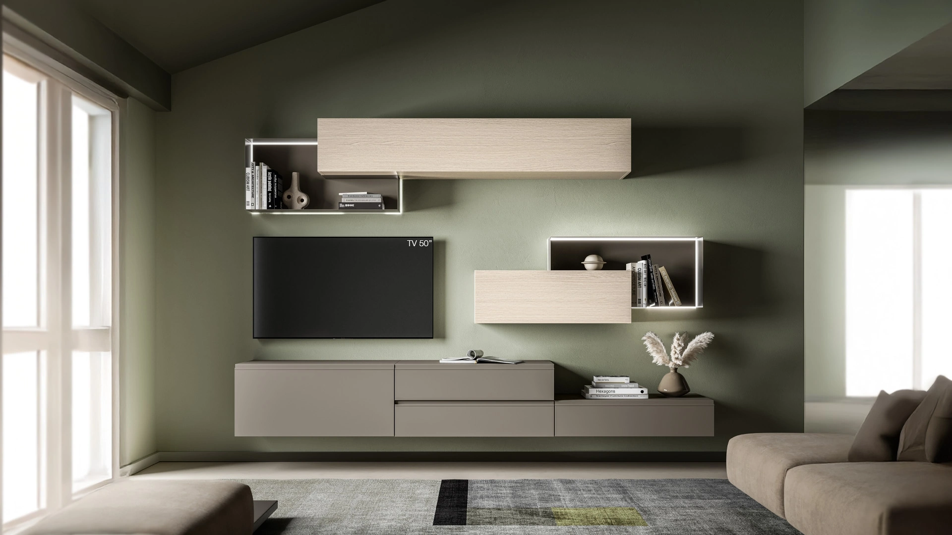 Se vuoi completare un living operativo e pratico dalle linee moderne, ti offriamo la parete attrezzata Pratico PTG433 SantaLucia.