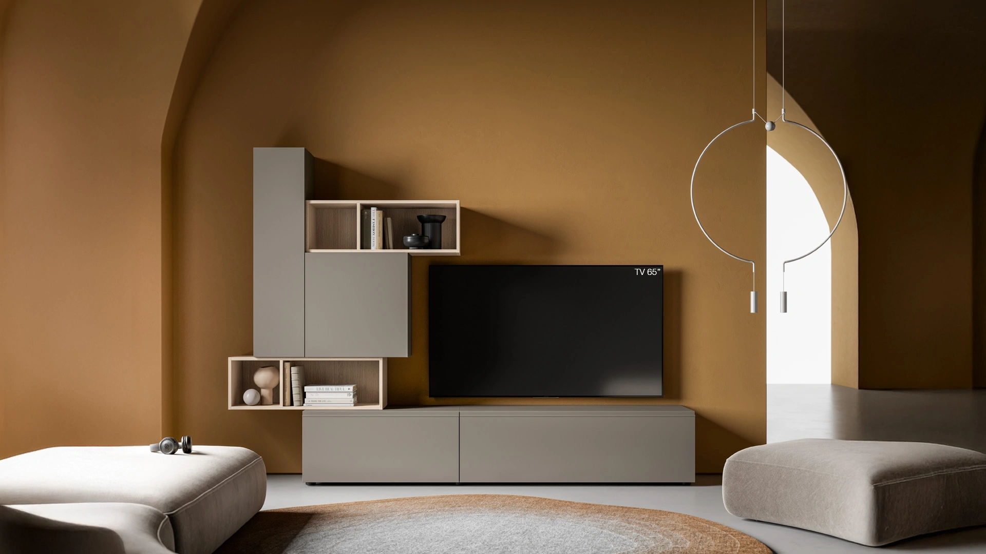La Parete Attrezzata Pratico PTG452 di SantaLucia nella fotografia è una delle più belle soluzioni d’arredo in commercio: l'alta componibilità e le differenti opportunità di progettazione la rendono funzionale ed esteticamente gradevole. SantaLucia produce innovativi modelli di mobili soggiorno, diversi per stile e conformazioni, finiture e accessori: scopri nel nostro showroom l'Arredamento Casa delle migliori marche. I mobili soggiorno in melaminico dalle linee moderne come il modello nella fotografia sono veramente eclettici e capaci di arredare la zona giorno ottimizzando ogni angolo. Lasciati affascinare da una ricca gamma di mobili per la zona giorno e troverai la parete attrezzata che fa per te.