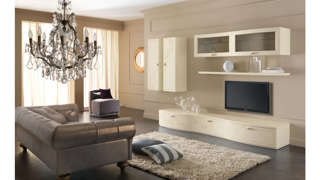 Ultimamente le Pareti Attrezzate hanno acquisito un posto importante in fatto di Arredamento Casa: sono mobili plurifunzionali e salvaspazio sempre realizzabili su misura. Questa parete attrezzata è una delle più esclusive soluzioni della marca e ti consentirà di progettare il living secondo le più personali esigenze abitative. Attraverso un gioco dinamico e operativo di incastri, sovrapposizioni, elementi a giorno o vani chiusi, le Pareti Attrezzate classiche arredano il soggiorno valorizzando ogni spazio. Per informazioni e preventivi sulla Parete Attrezzata Prestige Liberty 101 di Spar in foto contattaci! Il modello presente in foto è realizzato in laccato opaco ma grazie ad un'infinità di finiture, tonalità e forme potrà adattarsi a spazi di ogni genere.