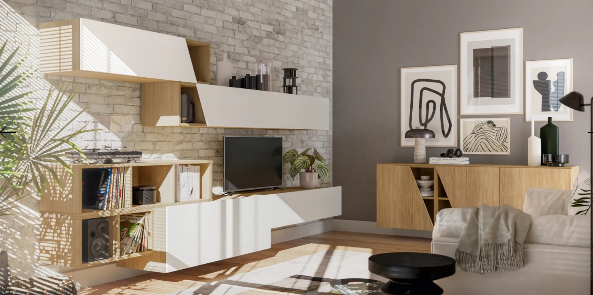 Pareti attrezzate e mobili giorno SantaLucia: clicca e scopri il modello PTG323 e potrai completare stanze moderne di ogni genere.