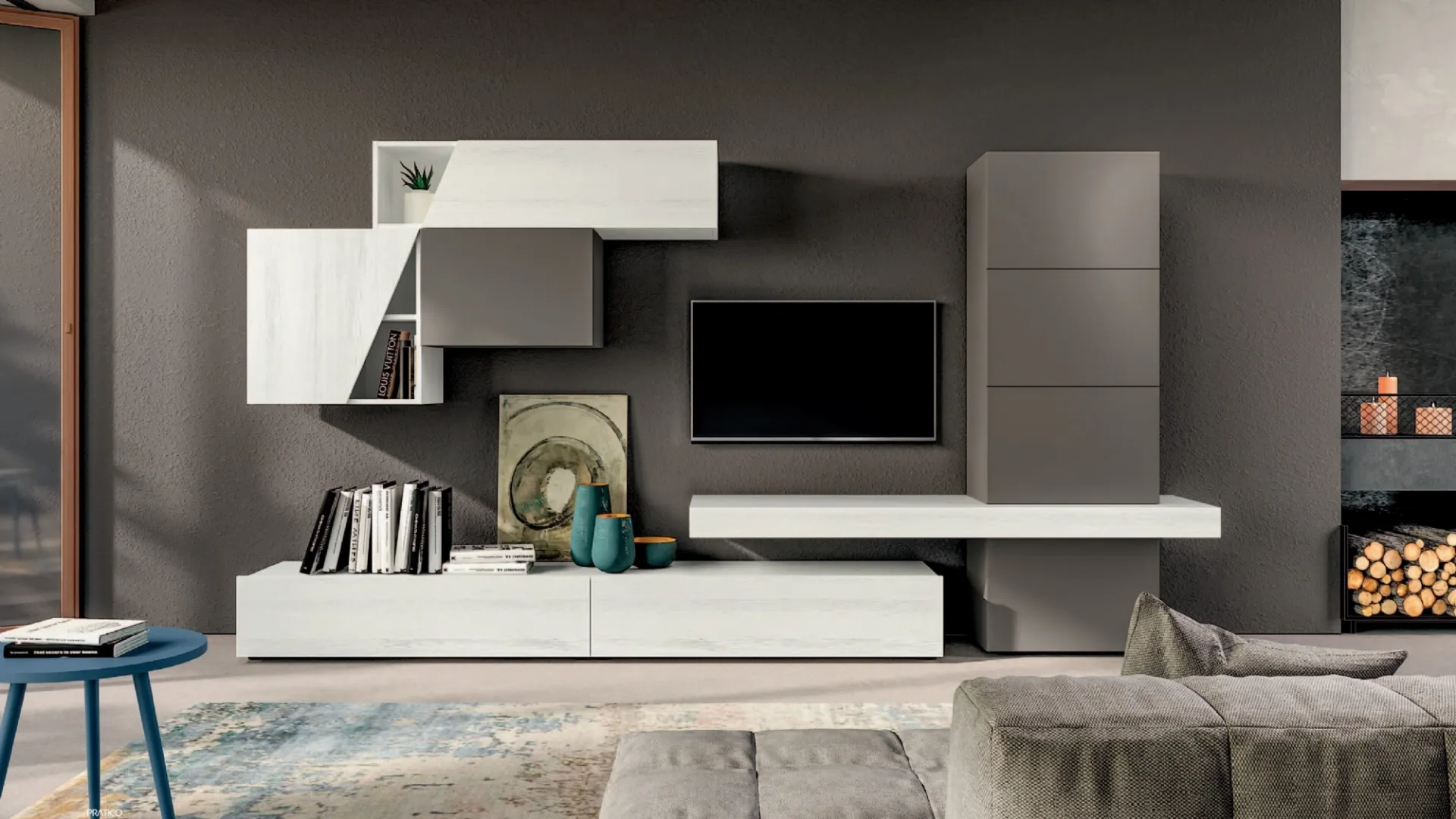 Pareti attrezzate e pensili SantaLucia: clicca e scopri il modello PTG304 e potrai arricchire stanze moderne di ogni genere.