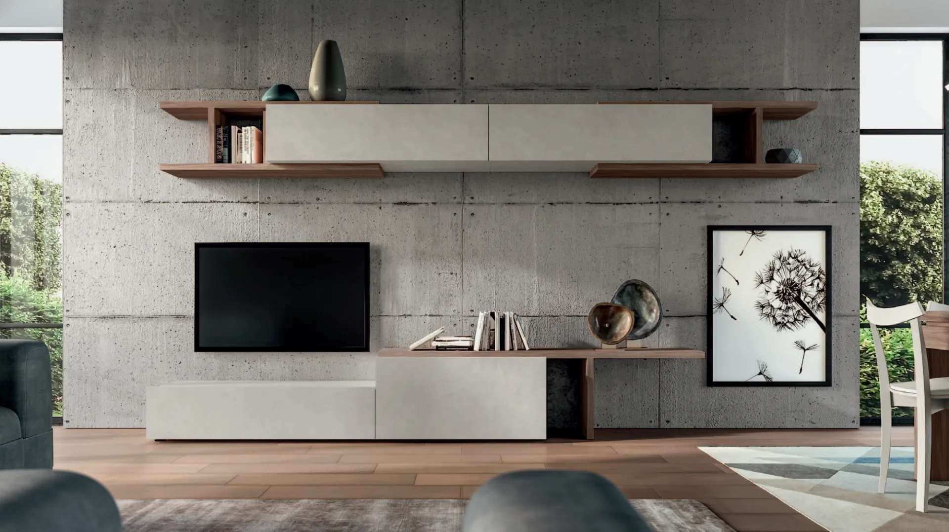 Negli utlimi tempi le Pareti Attrezzate hanno acquisito un posto di primo piano in fatto di Arredamento Casa: sono mobili multifunzionali e salvaspazio sempre realizzabili su misura. Questa parete attrezzata è una delle più esclusive soluzioni del brand e ti consentirà di ammobiliare la zona giorno secondo le più particolari esigenze abitative. Attraverso un gioco pratico e operativo di incastri, sovrapposizioni, elementi a giorno o vani chiusi, le Pareti Attrezzate moderne arredano il living sfruttando bene ogni spazio. Per informazioni e preventivi sulla Parete Attrezzata PTG308 di SantaLucia nella fotografia contattaci! Il modello mostrato in foto è realizzato in materico ma grazie ad un'infinità di finiture, tonalità e conformazioni potrà adattarsi a spazi di ogni tipo.