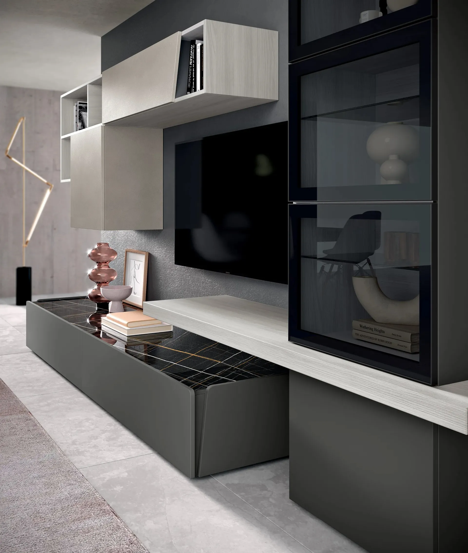 Pareti attrezzate e mobili soggiorno Spar: clicca e scopri il modello Sky 10 e potrai valorizzare stanze moderne di ogni genere.