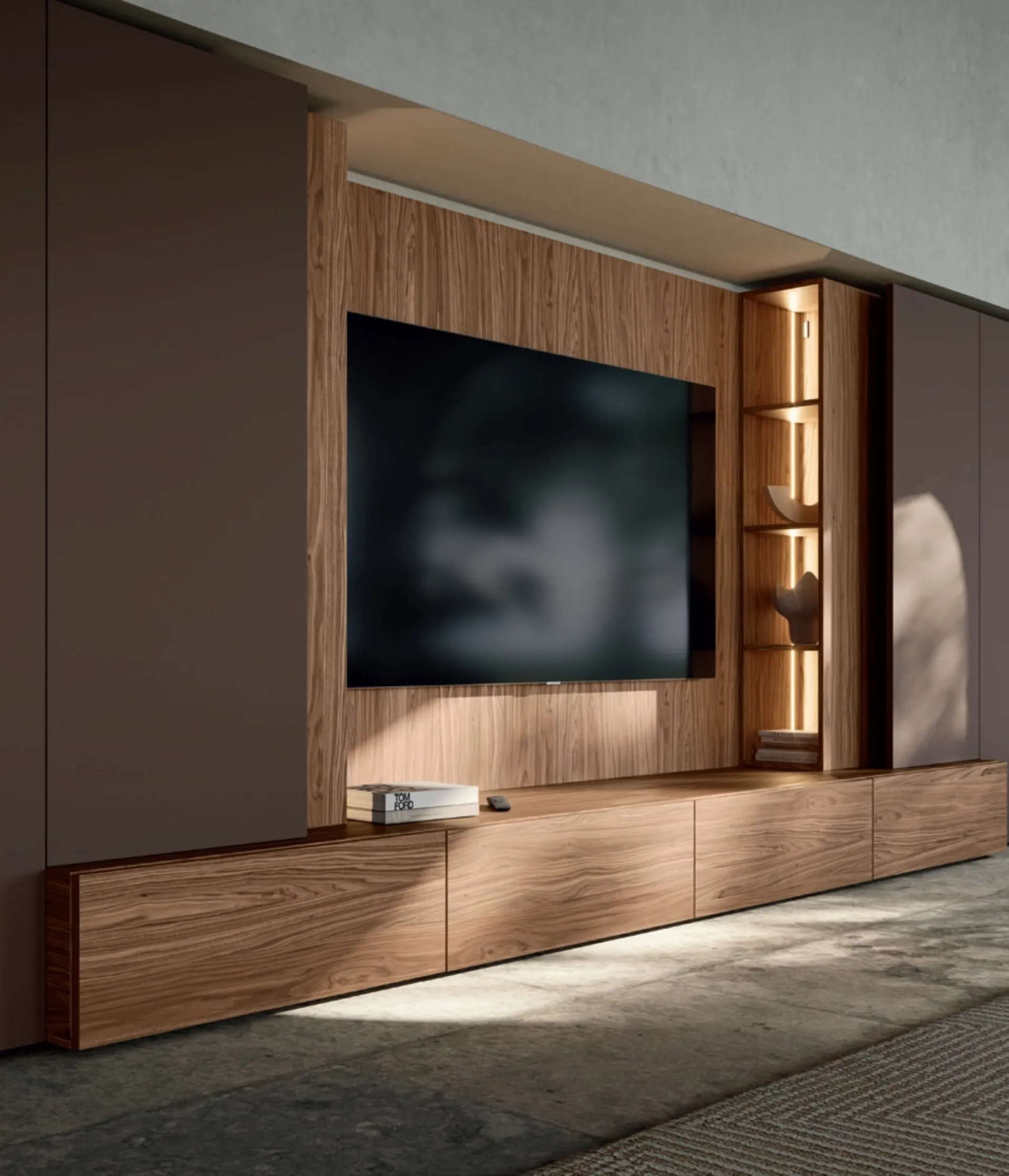 Clicca e scopri di più sulla parete attrezzata Slim Noce Canaletto del marchio Dall'Agnese: è la soluzione dalle linee moderne perfetta per te.