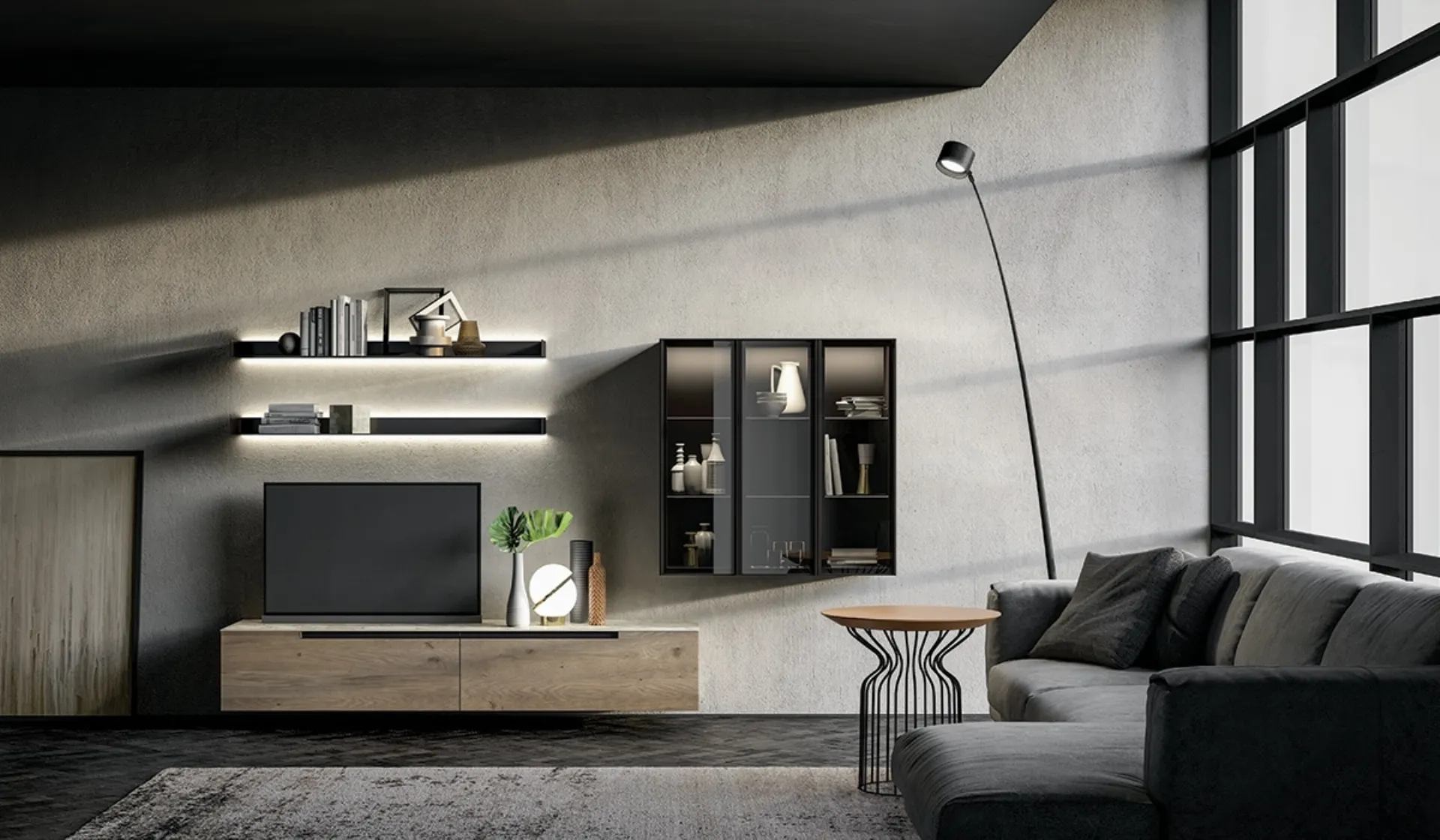 Se vuoi pensili e pareti attrezzate moderne, scegli il modello Slim Up Comp 07 in Rovere Cenere di Dall'Agnese: clicca e scopri di più!